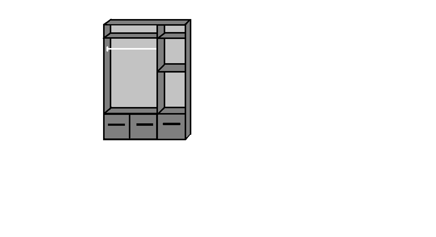 Wardrobe - INAGU 3 Door 3 Drawer Mirrored Wardrobe White 135cm