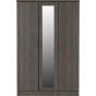 Wardrobe - LISKEARD 3 Door Mirrored Wardrobe Black Wood Grain 120cm