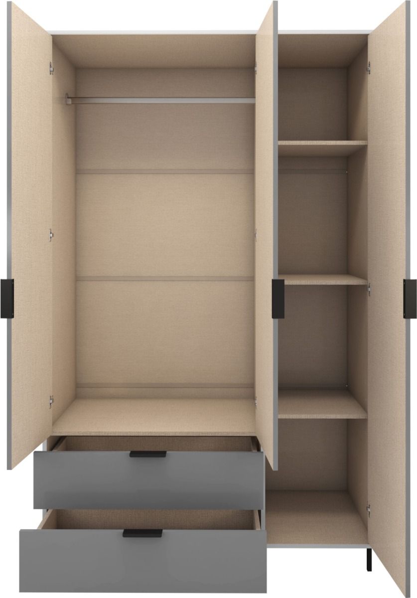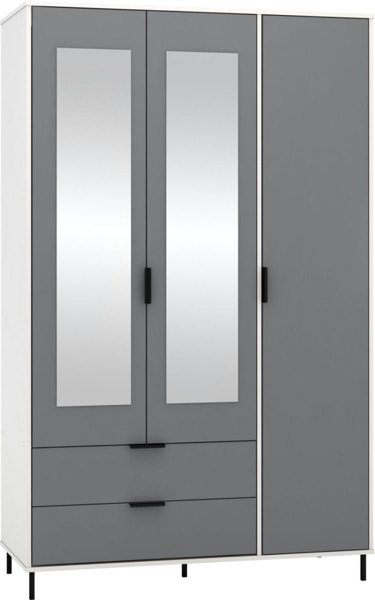 Wardrobe - MANILA 3 Door Mirrored Wardrobe Grey White Gloss 121.5cm