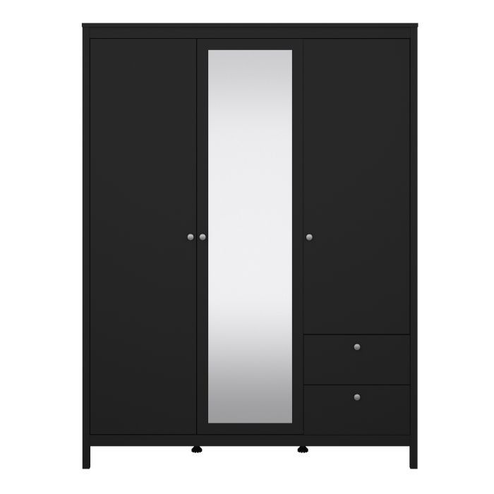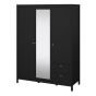 Wardrobe - MEMPHIS 3 Door Mirrored Wardrobe Matt Black 150cm