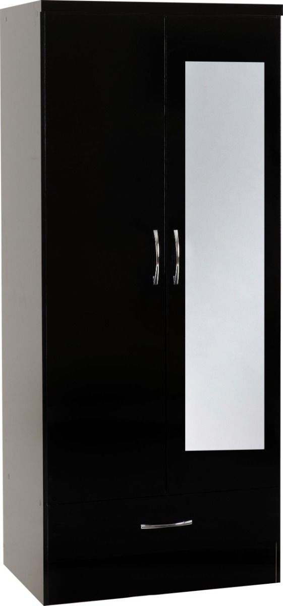 Wardrobe - NEWBIGGIN 2 Door Mirrored Wardrobe Black Gloss 78cm