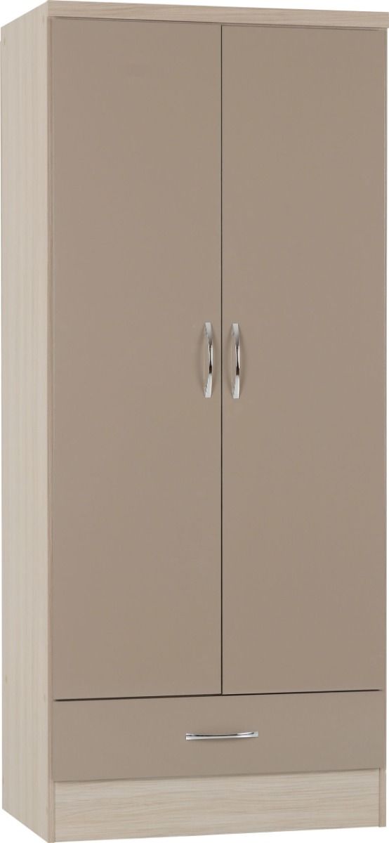 Wardrobe - NEWBIGGIN 2 Door Wardrobe Oyster Gloss with Light Oak 78cm