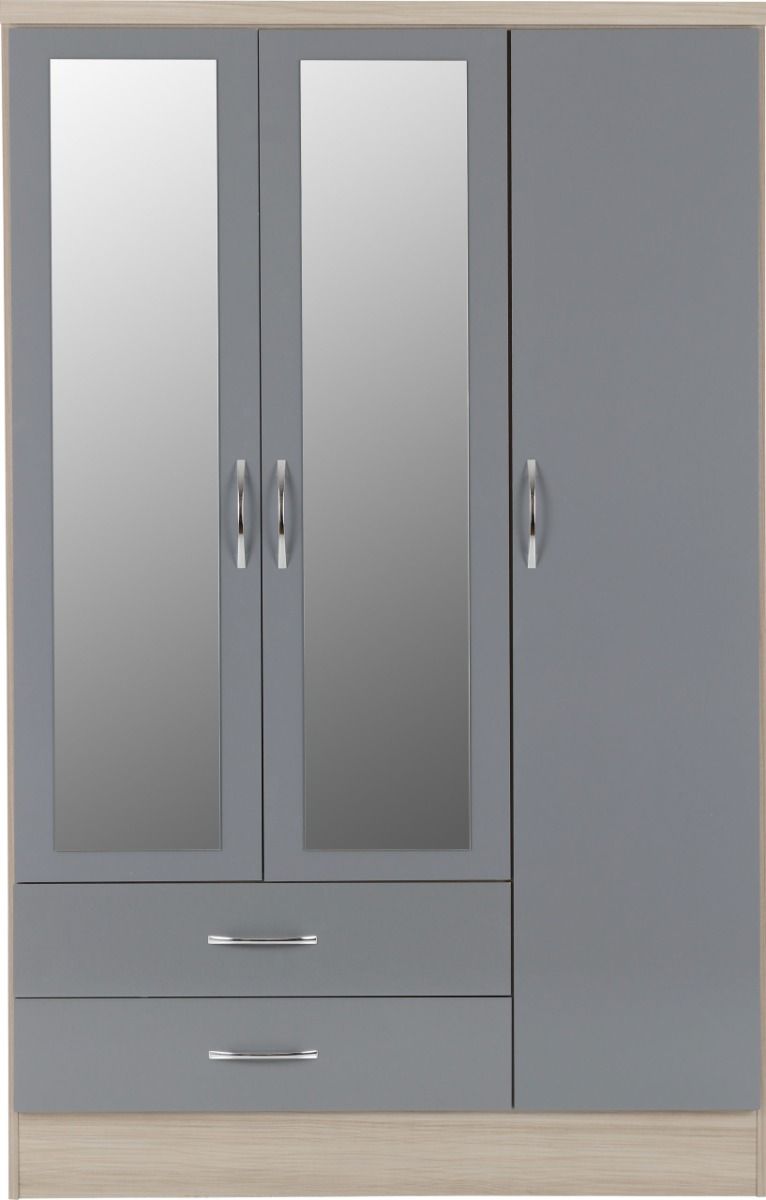 Wardrobe - NEWBIGGIN 3 Door Mirrored Wardrobe Grey Gloss with Light Oak 116cm