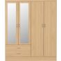 Wardrobe - NEWBIGGIN 4 Door Mirrored Wardrobe Sonoma Oak Effect 154cm