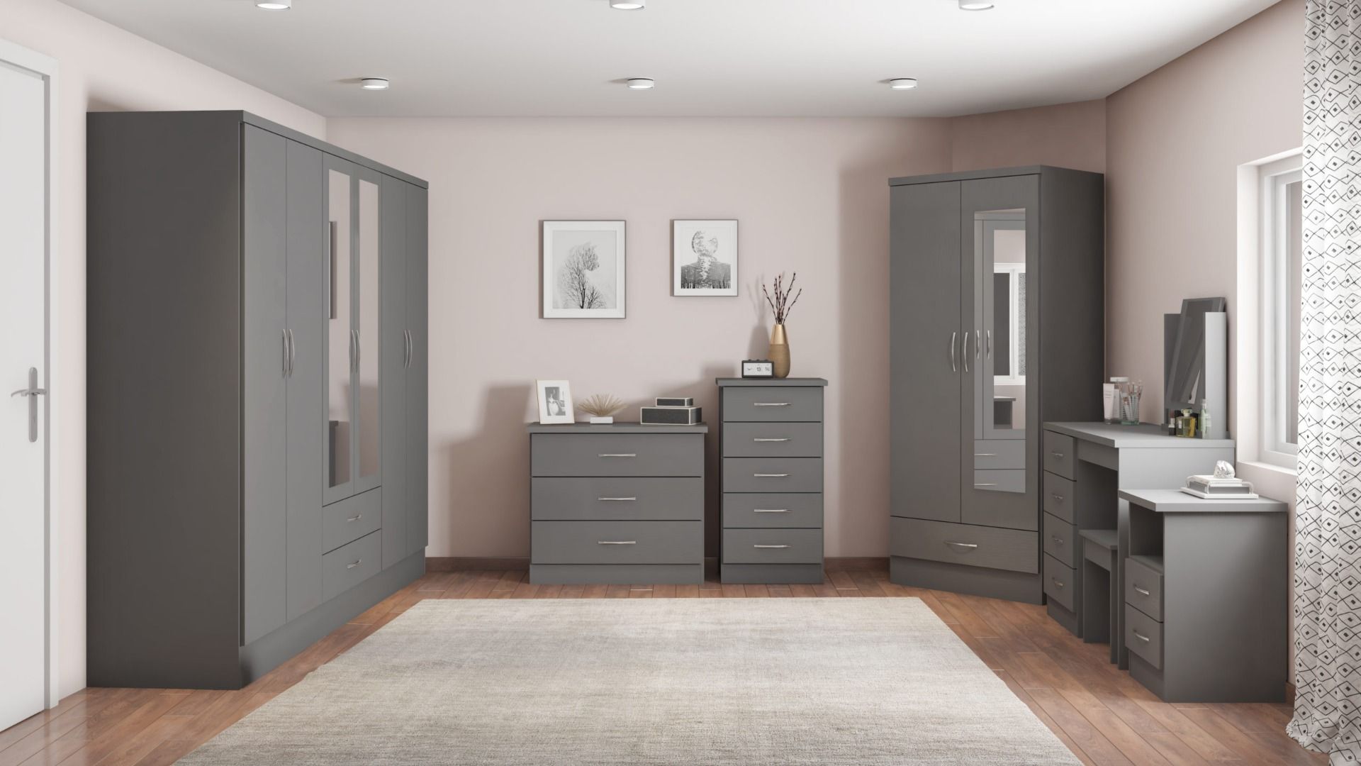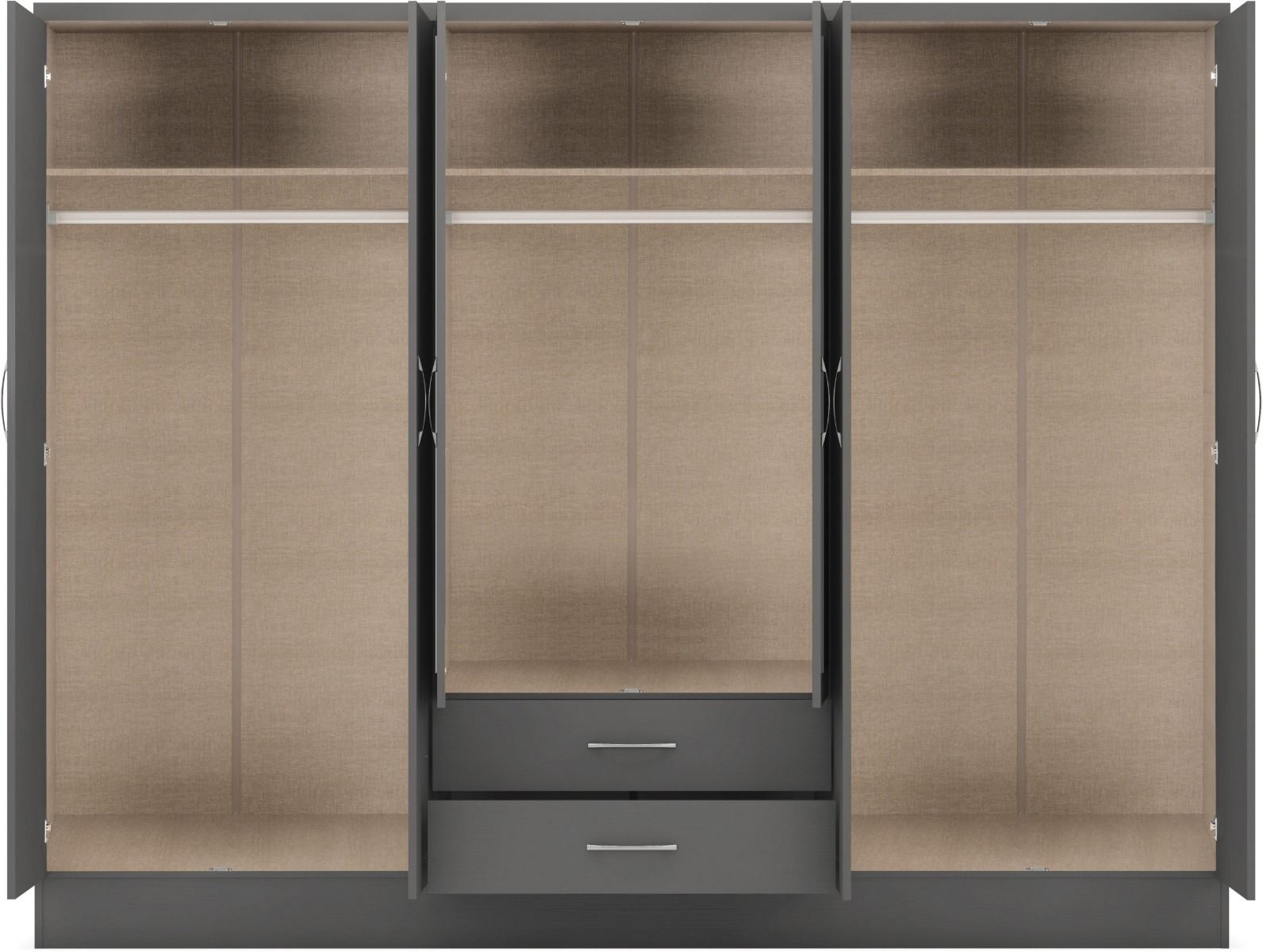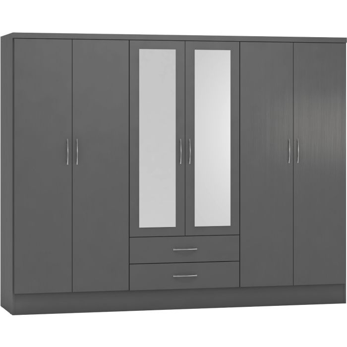 Wardrobe - NEWBIGGIN 6 Door Mirrored Wardrobe 3D Effect Grey 230cm