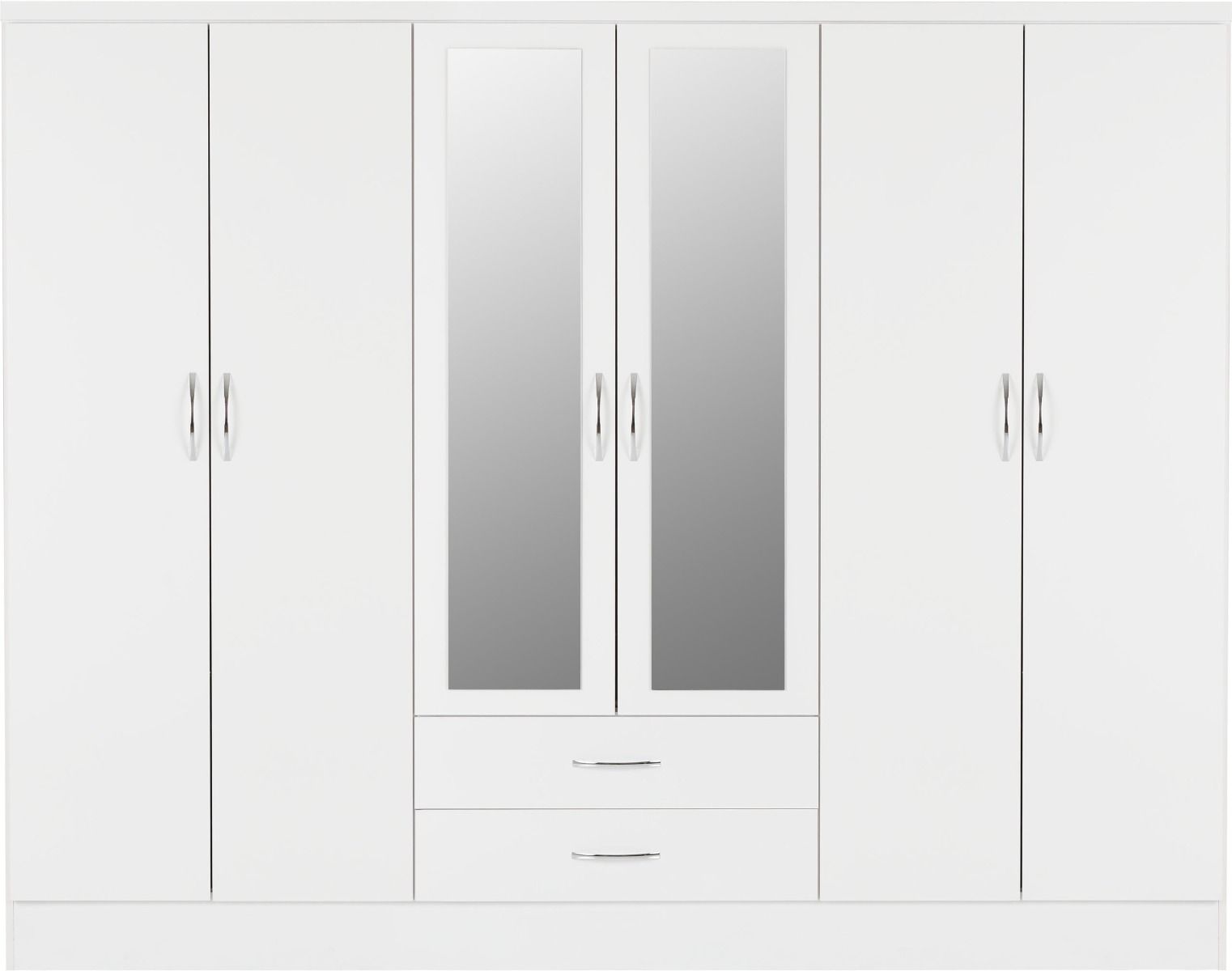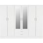 Wardrobe - NEWBIGGIN 6 Door Mirrored Wardrobe White Gloss 230cm