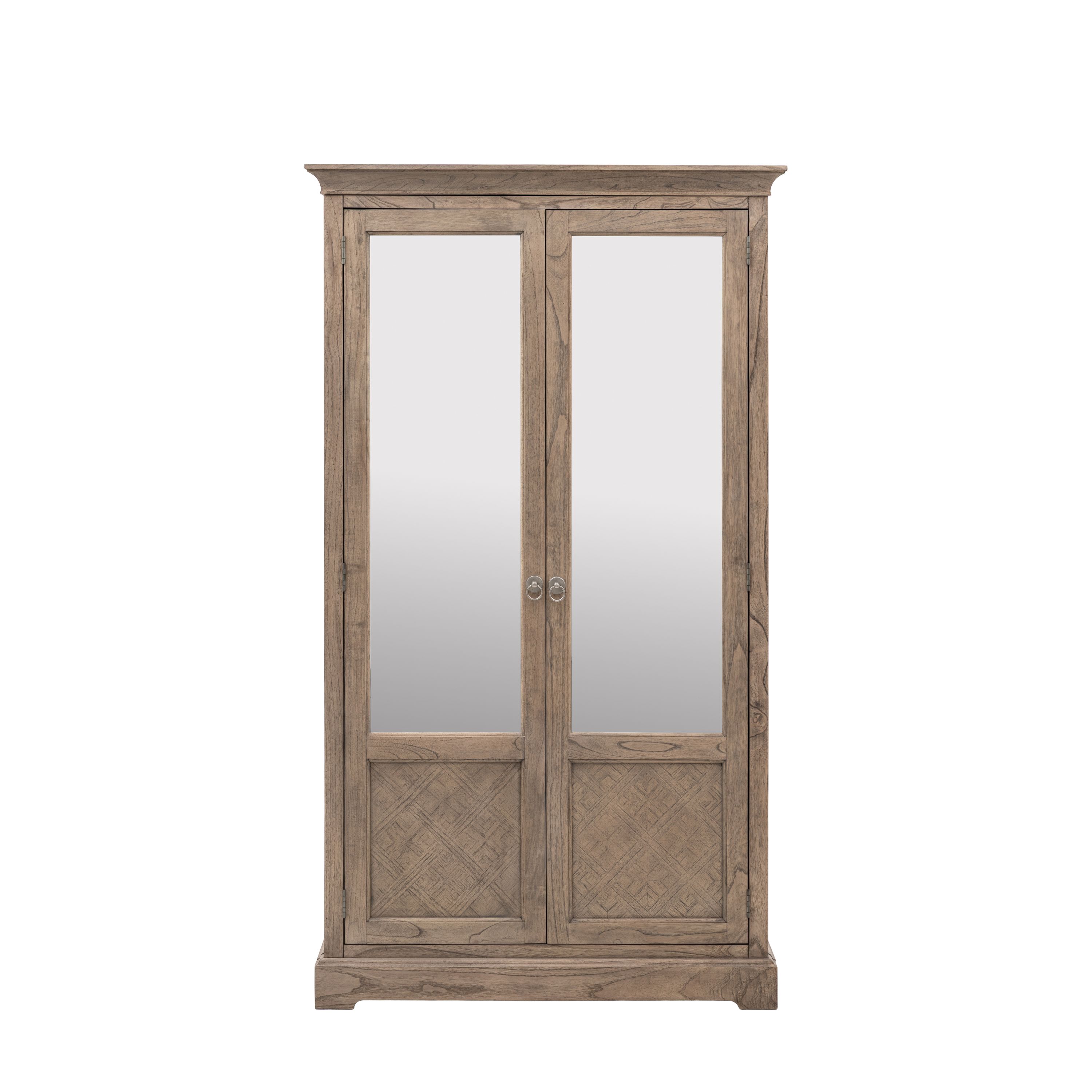 Wardrobe - OAKLEIGH 2 Door Mirrored Wardrobe Light Wood 111.5cm