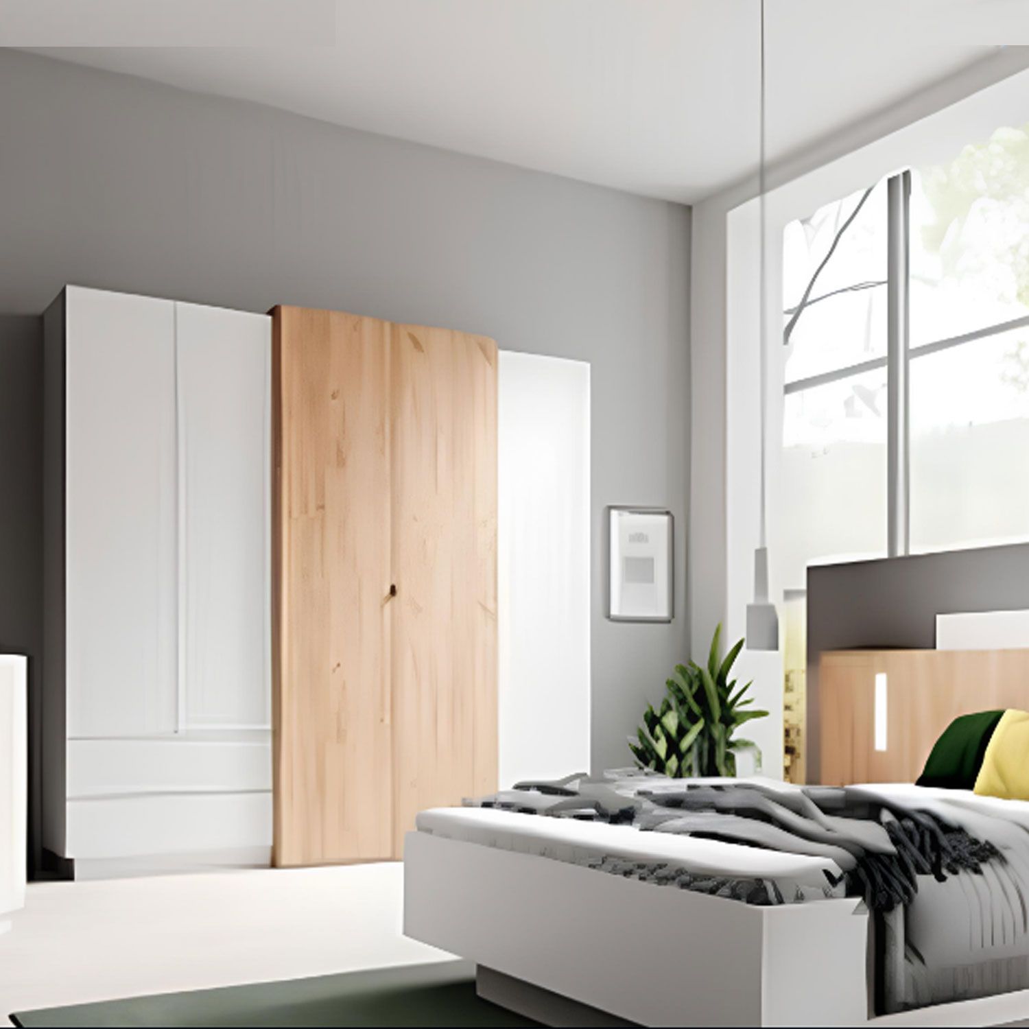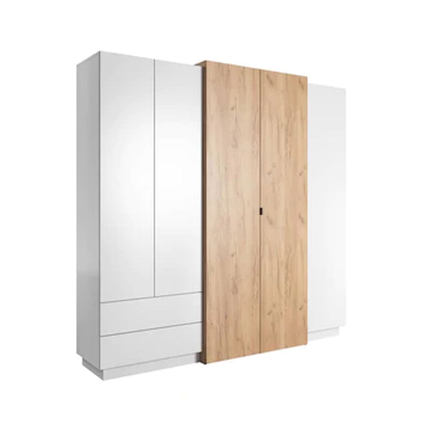 Wardrobe - PANTHEON 4 Door Mirrored Wardrobe White and Oak 230cm