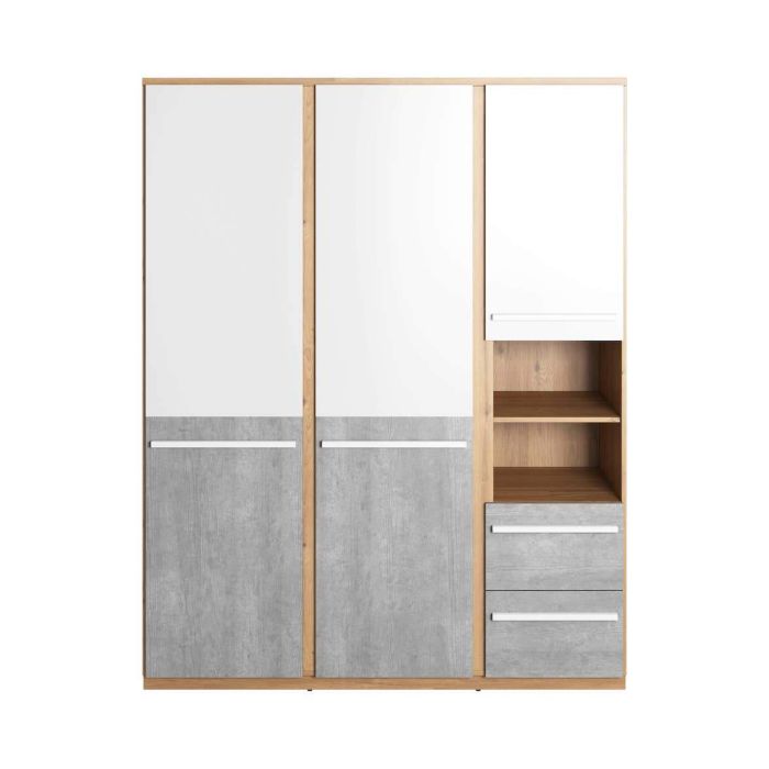 Wardrobe - PLUMSTEAD 2 Door Wardrobe White Matt and Concrete 150cm