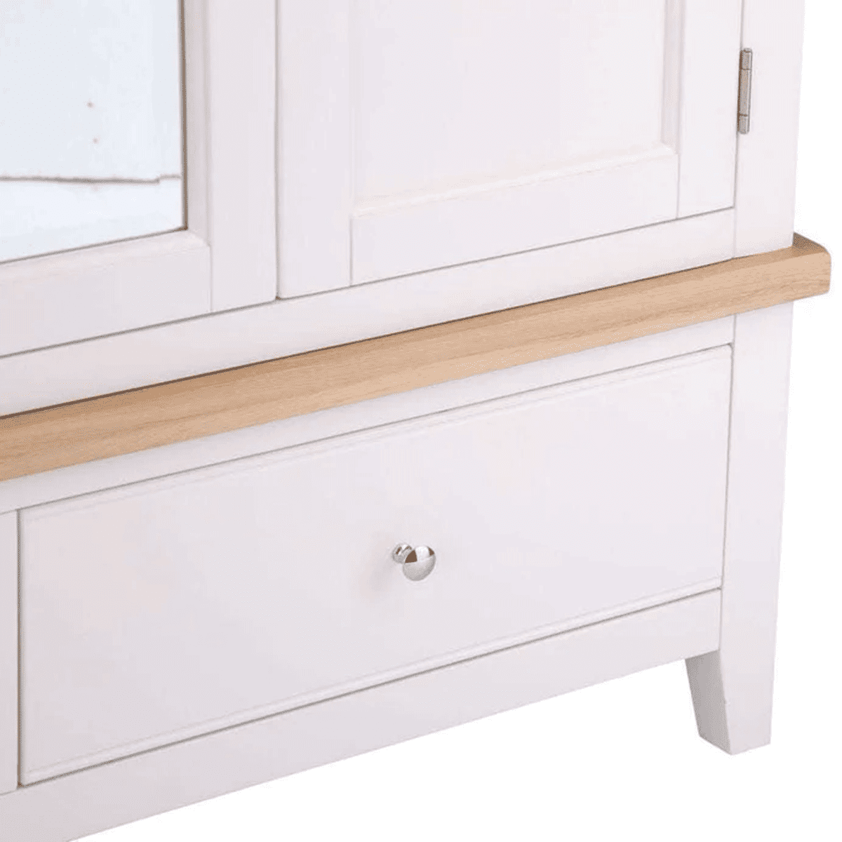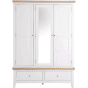 Upgrade your bedroom storage with the Quantum 3 Door Wardrobe in White and Oak. This wardrobe, featuring White painted accents, combines style and function. It comes with 2 drawers, 3 doors, a hardwood hanging rail, and chrome handles. While assembly is required, it provides a spacious and stylish solution for your clothing and accessories.