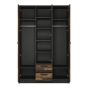 An eccentric design that has an industrial feel to it. This 3 door wardrobe will not dissapoint, boasting 6 shelves, 2 drawers and 3 doors. The perfect solution for storing clothes and other items. The Romania collection is made with laminated chipboard which is resistant to scratches, damage, moisture and high temperatures.