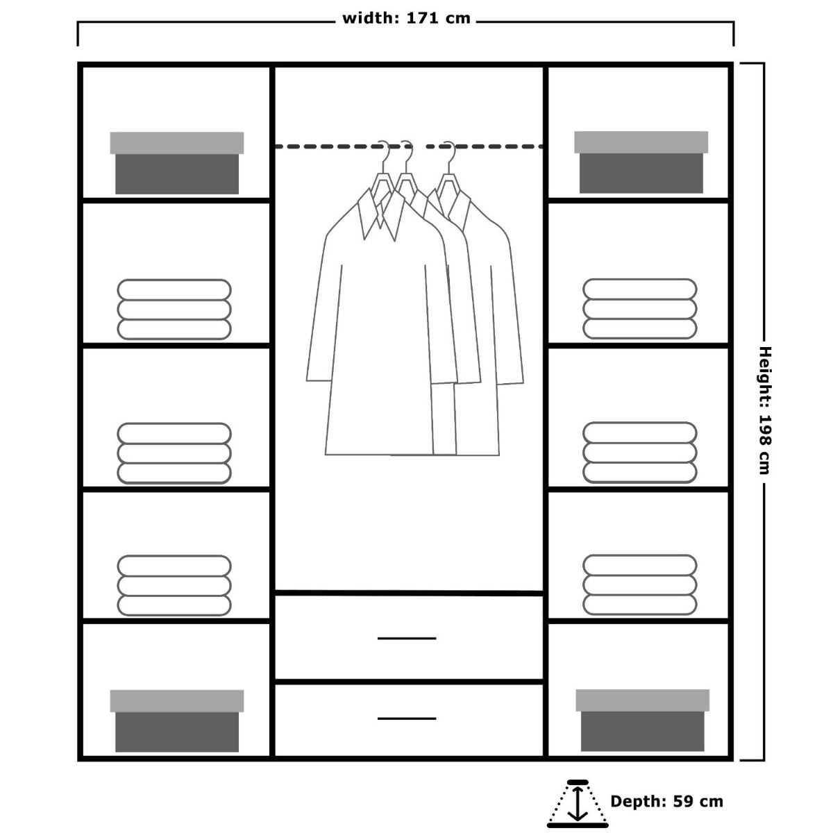 The Classic Roman Wardrobe. From drawers to shelves and so much hanging space, it has more than enough storage for everything from suits and shorts to trousers and tops - and from blankets to bedding. Plus you also have plenty of room for shoes, boots, and storage boxes. Everything is neatly stored away so your bedroom stays looking neat and tidy. The side panels and drawers of the Roman boast a classic matte finish while the doors feature a splendiferous high gloss finish. This wardrobe has a mirror on one of the doors so you can check how your look head to toe before you leave. The mirror reflects the light inside when placed near a window and it makes your bedroom look more spacious too. The sliding doors on this wardrobe are superbly quiet as they come with fittings from quality brand Several.
