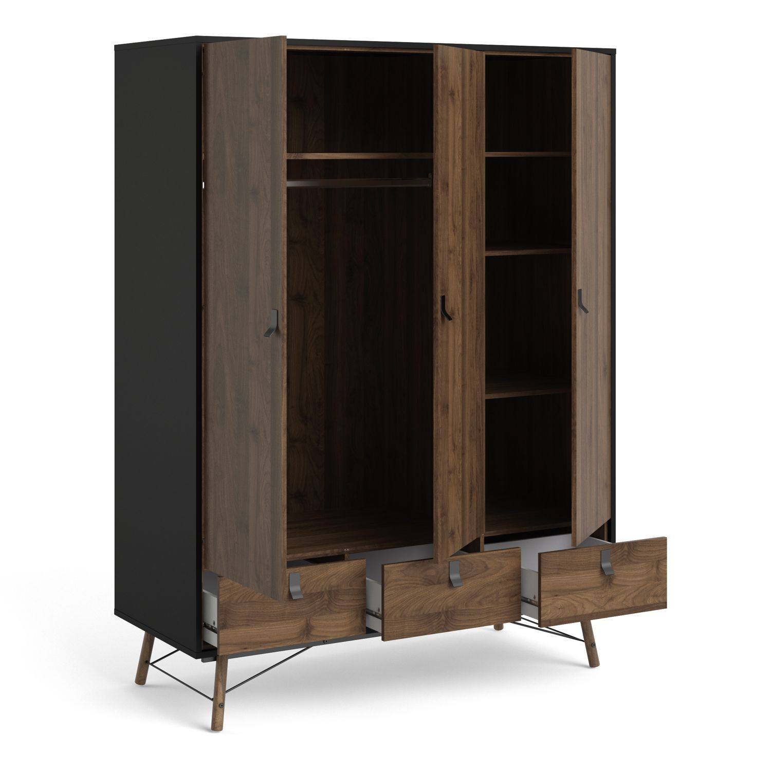 Wardrobe - RYTON 3 Door Wardrobe Matt Black Walnut 150.2cm