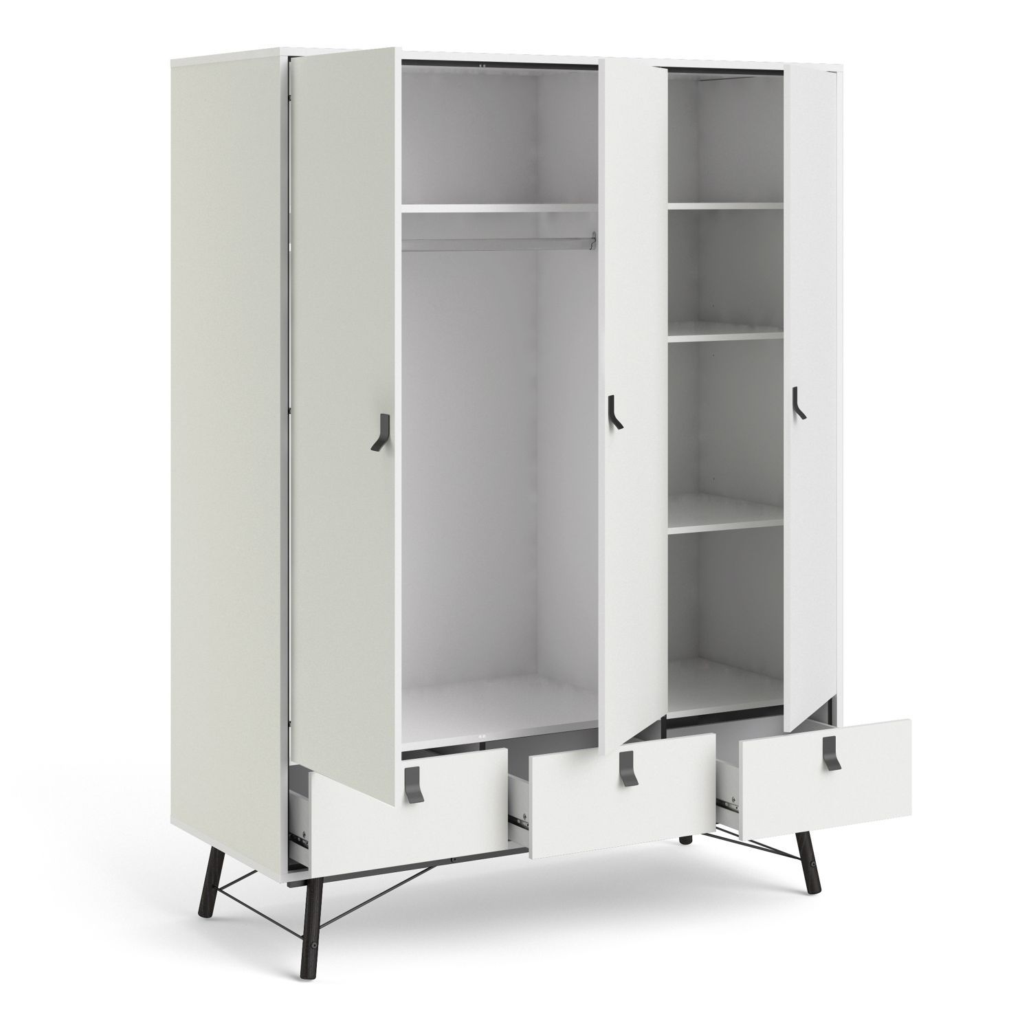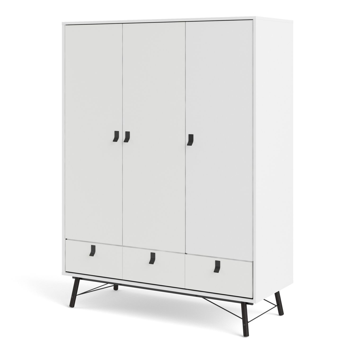 Wardrobe - RYTON 3 Door Wardrobe White 150.2cm