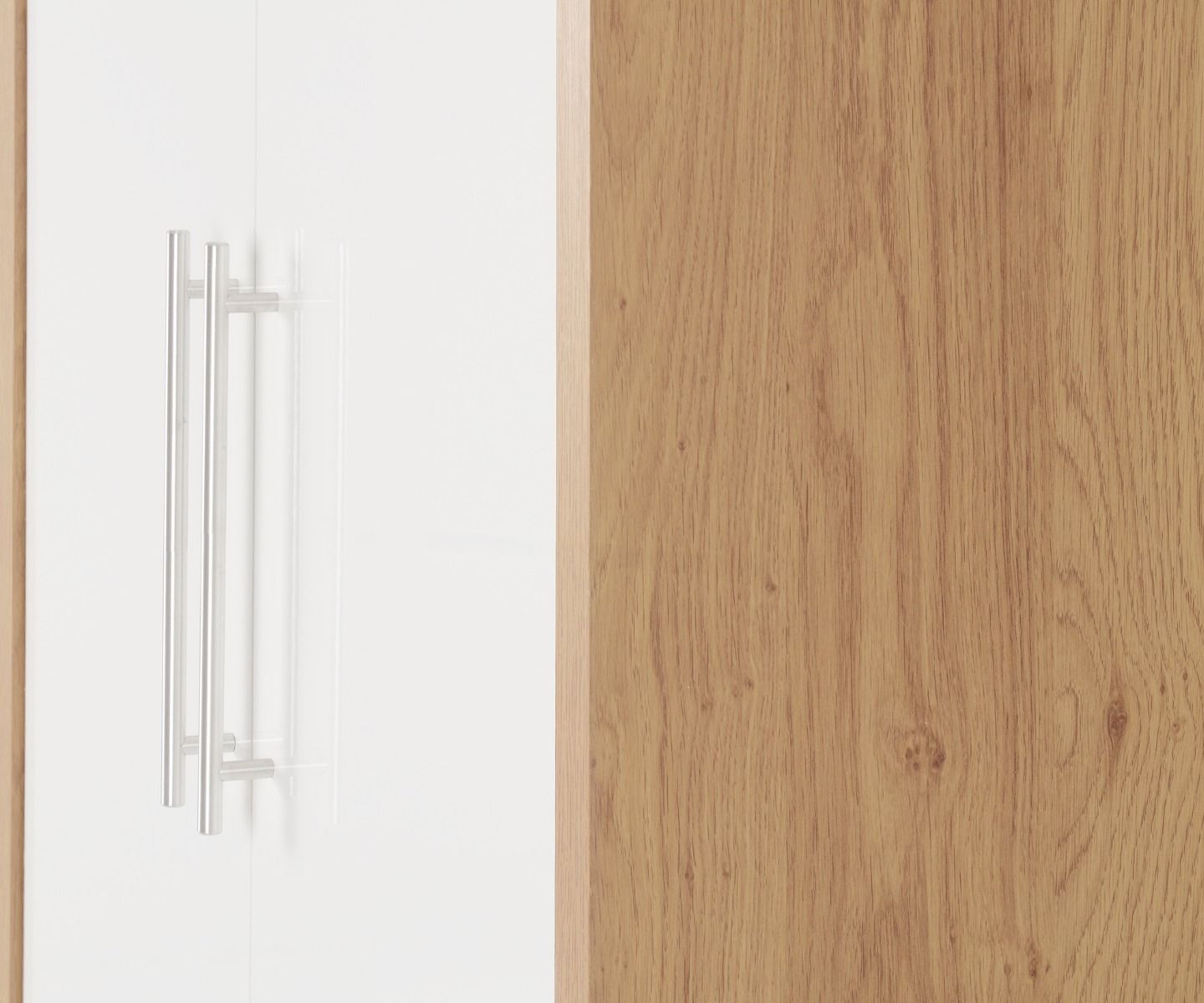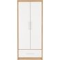 Wardrobe - SELSEY 2 Door 1 Drawer Wardrobe White High Gloss with Light Oak 76cm