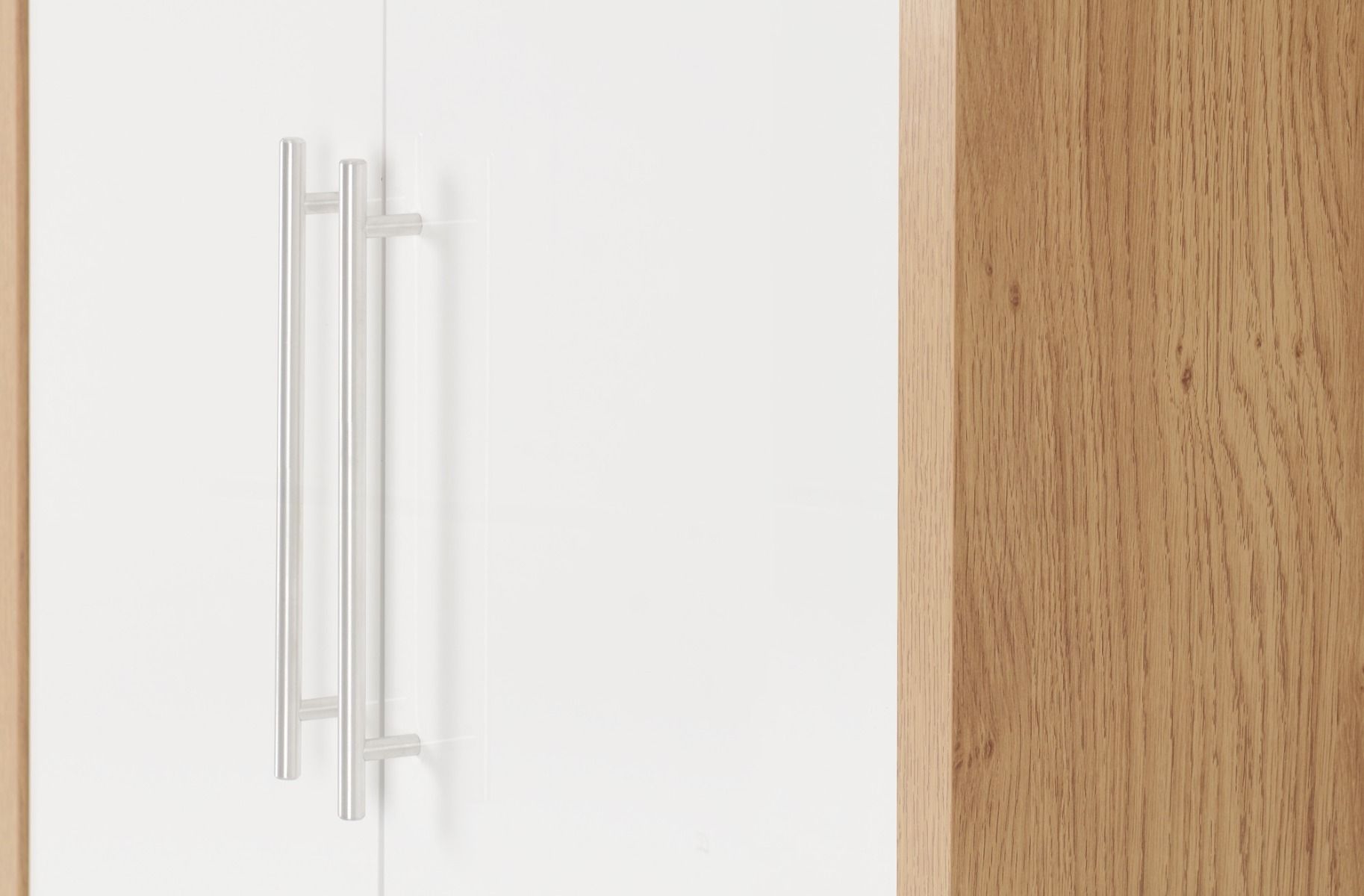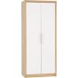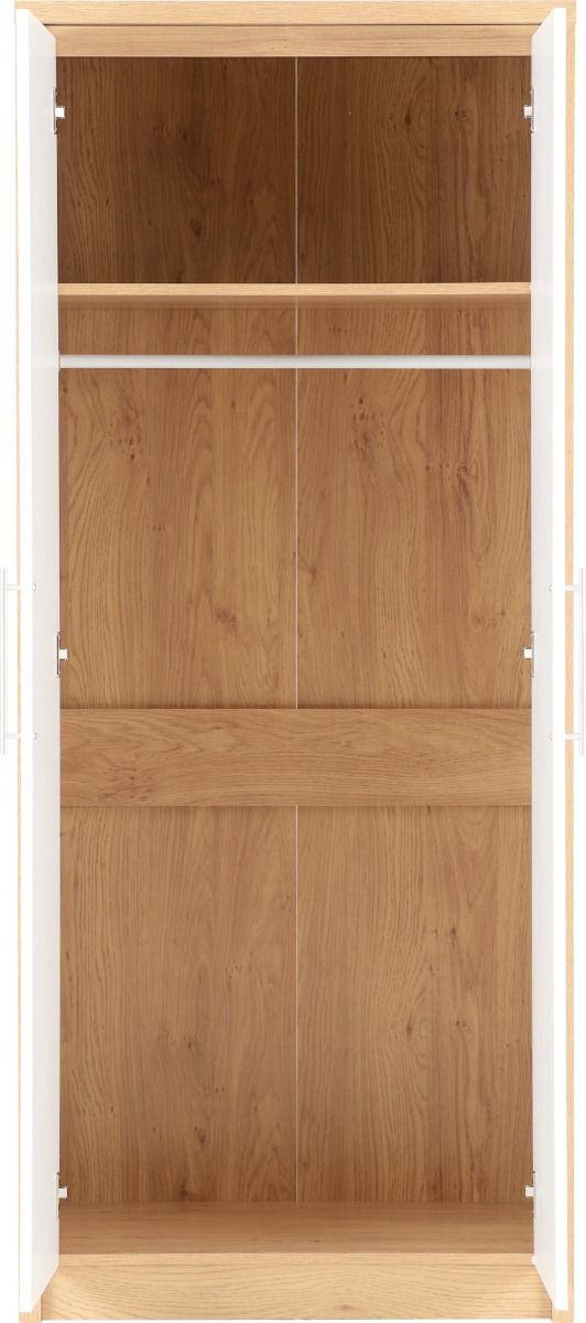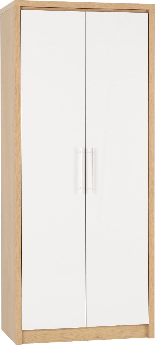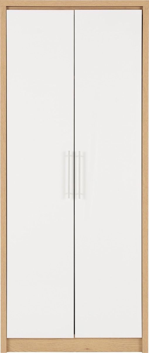 Wardrobe - SELSEY 2 Door Wardrobe White High Gloss with Light Oak 76cm