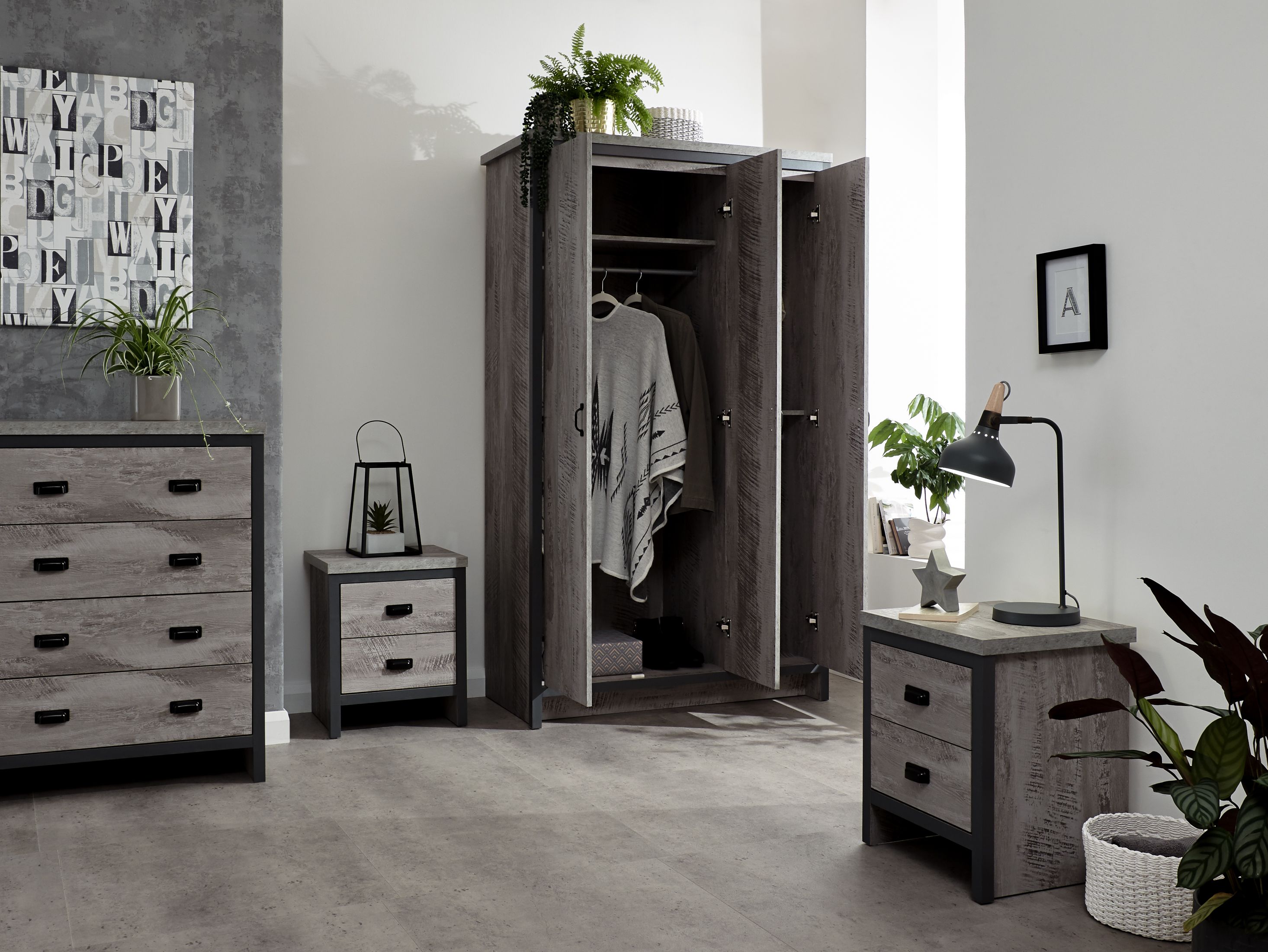Wardrobe Set - BELONA 3 Door Bedroom Set 4 Piece Grey 105cm