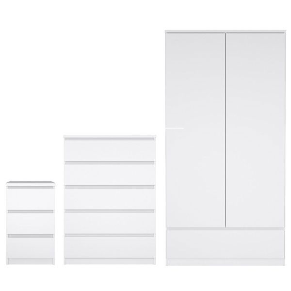 Wardrobe Set - NANAIMO 2 Door Bedroom Set 3 Piece White 98cm