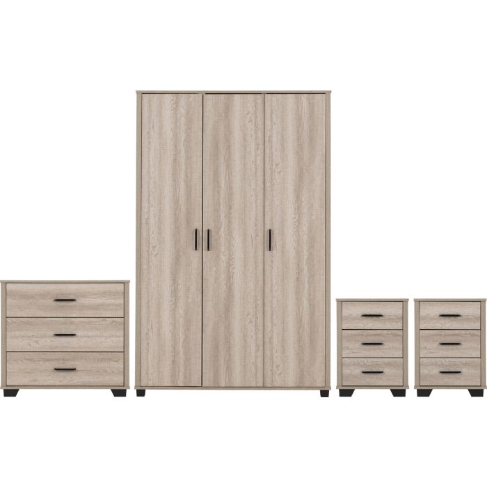 Wardrobe Set - OLDBURY 3 Door Bedroom Set Light Oak Effect 120cm