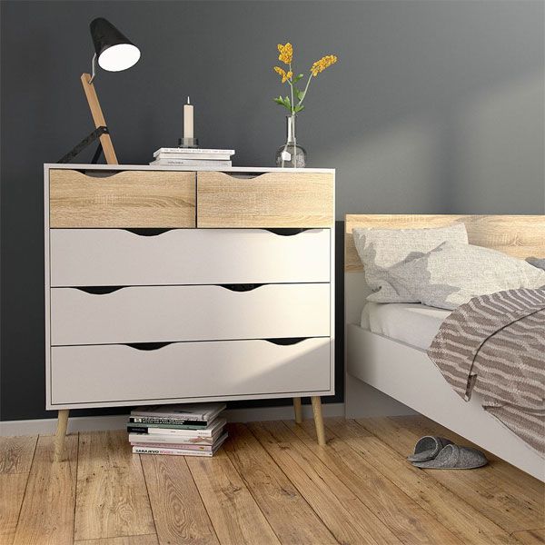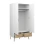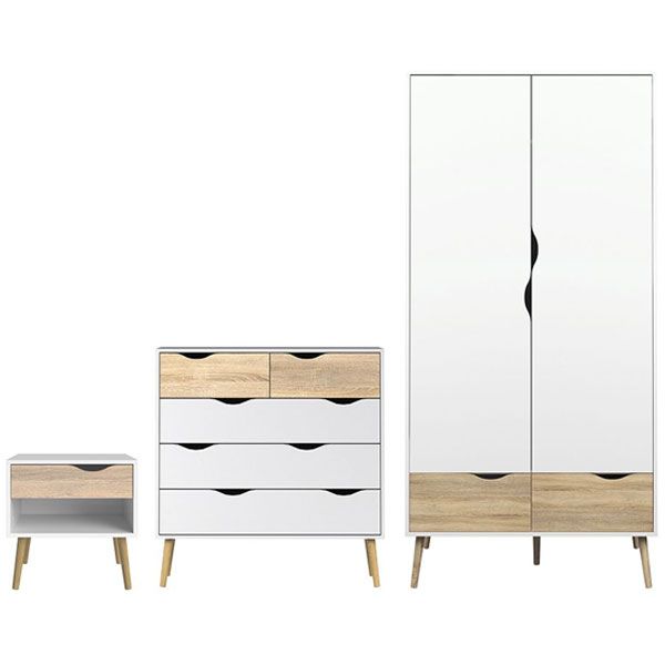 Wardrobe Set - OSSETT 2 Door Bedroom Set 3 Piece White and Oak 98cm