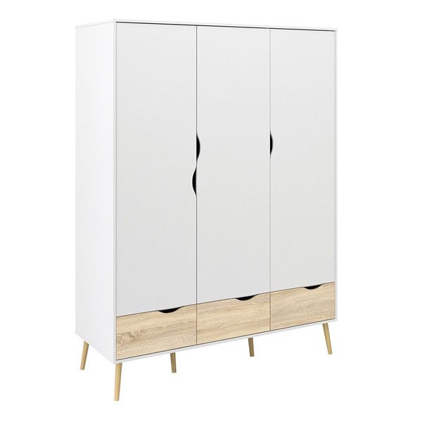 Wardrobe Set - OSSETT 3 Door Bedroom Set 3 Piece White and Oak 147cm