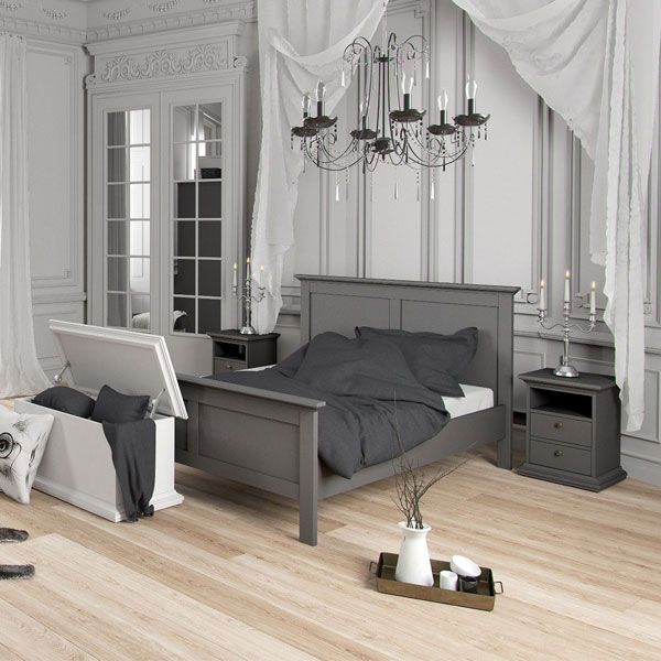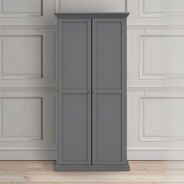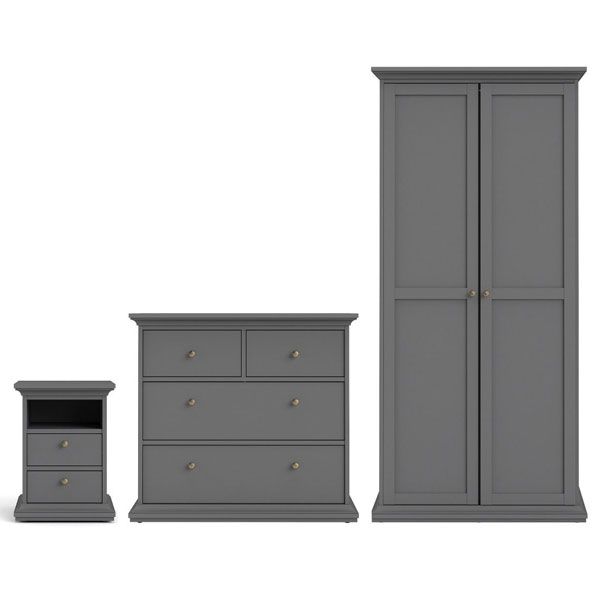Wardrobe Set - PORTHOPE 2 Door Bedroom Set 3 Piece Matt Grey 96cm