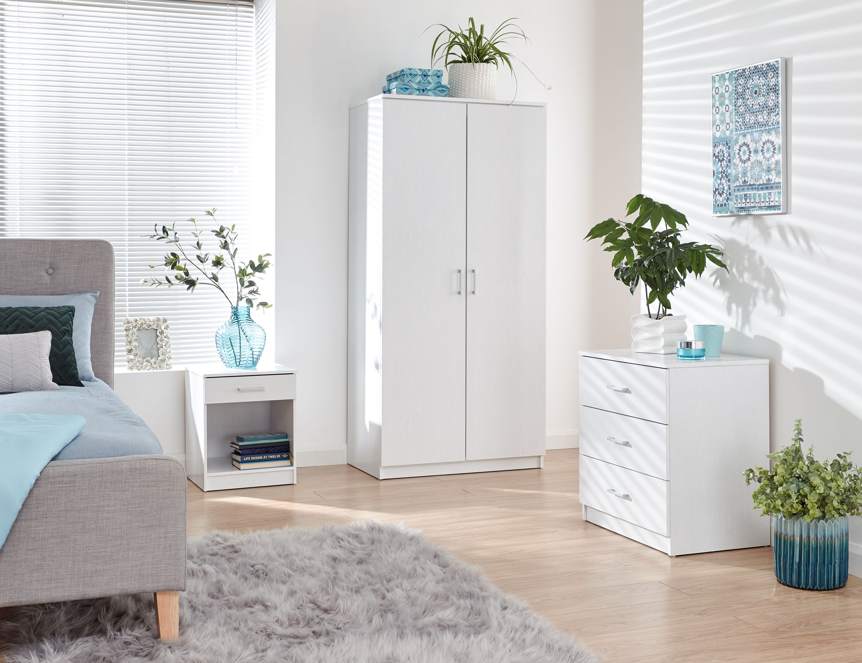 Wardrobe Set - PRADA 2 Door Bedroom Set 3 Piece White 79cm