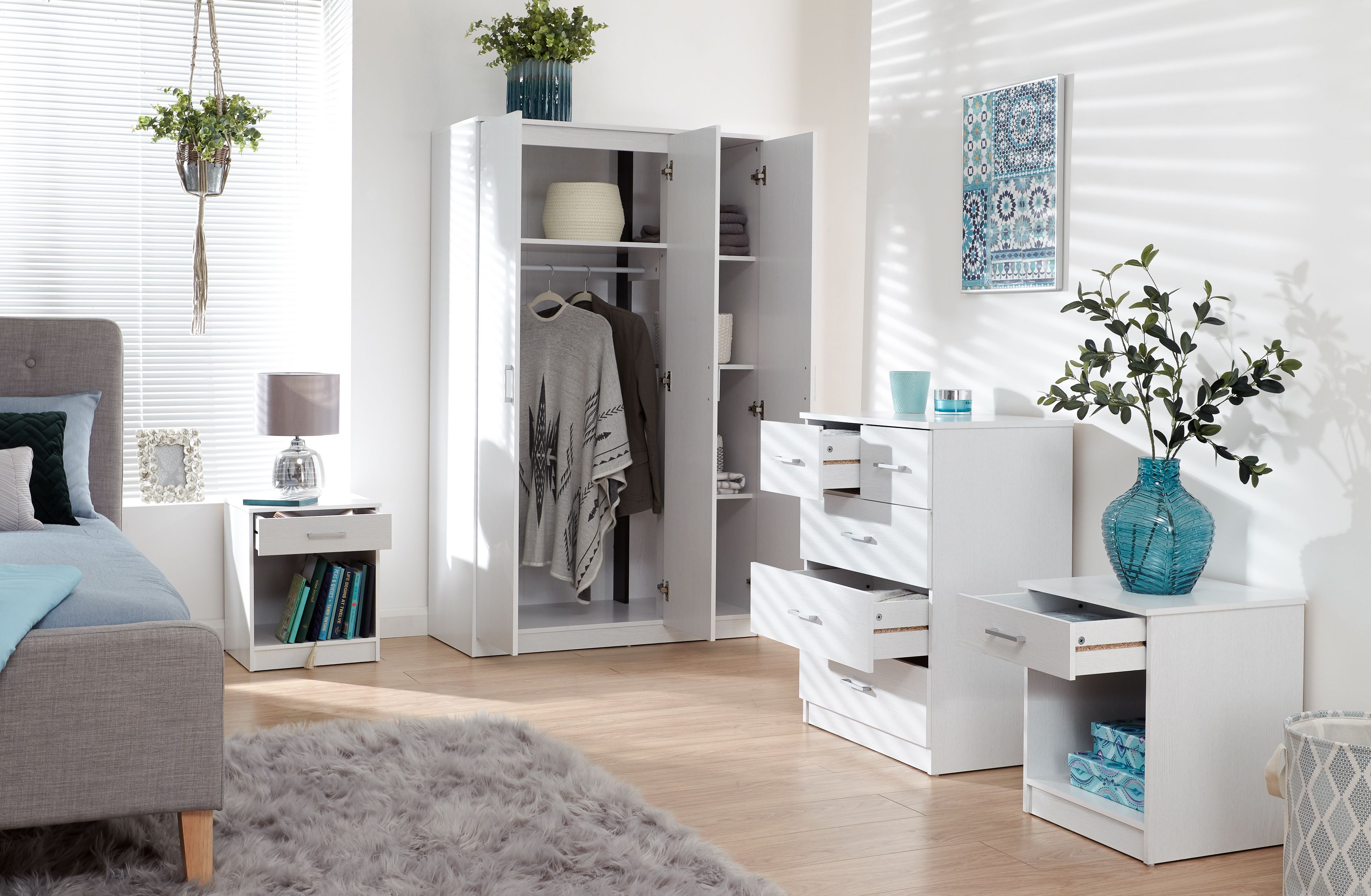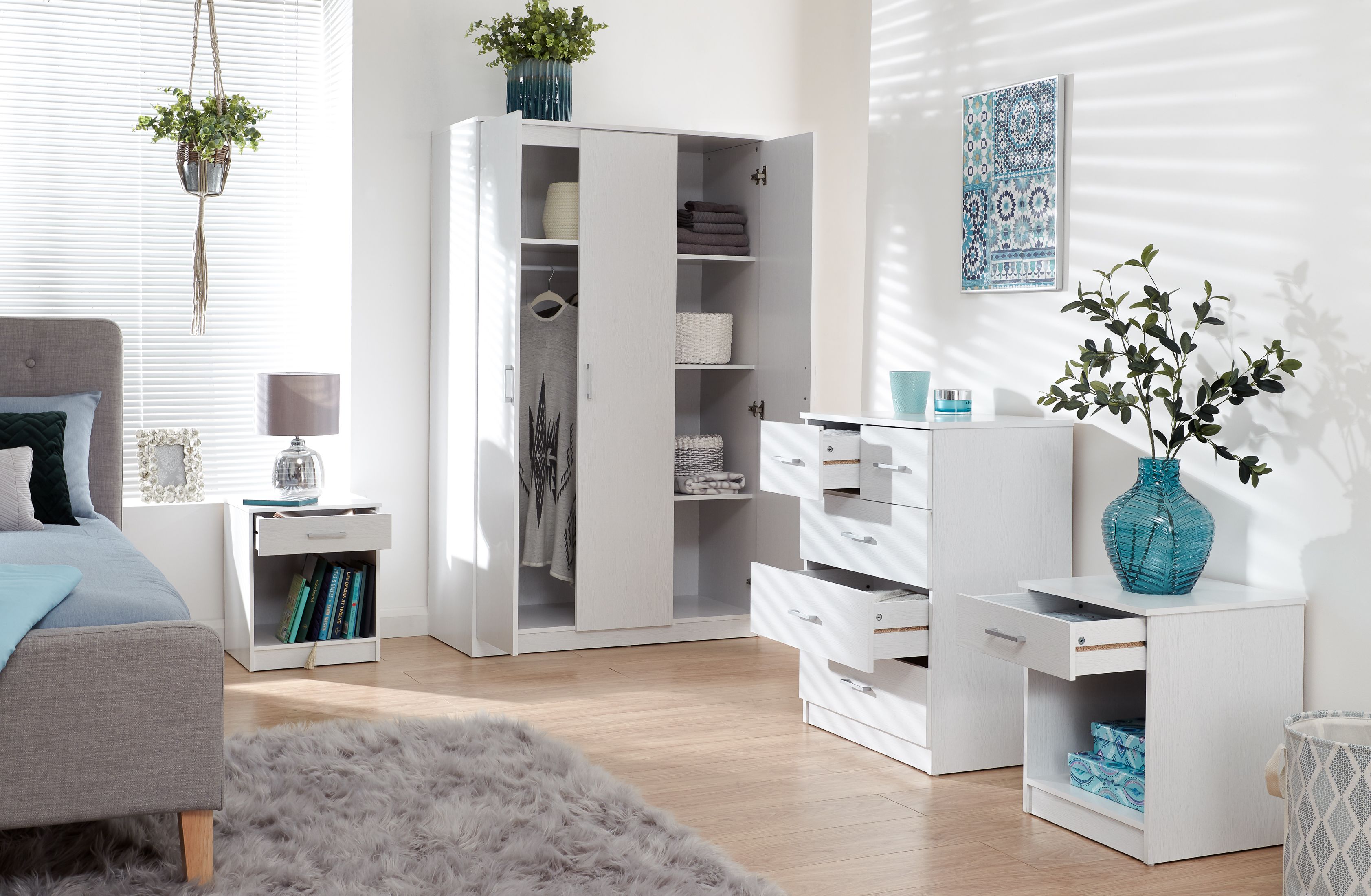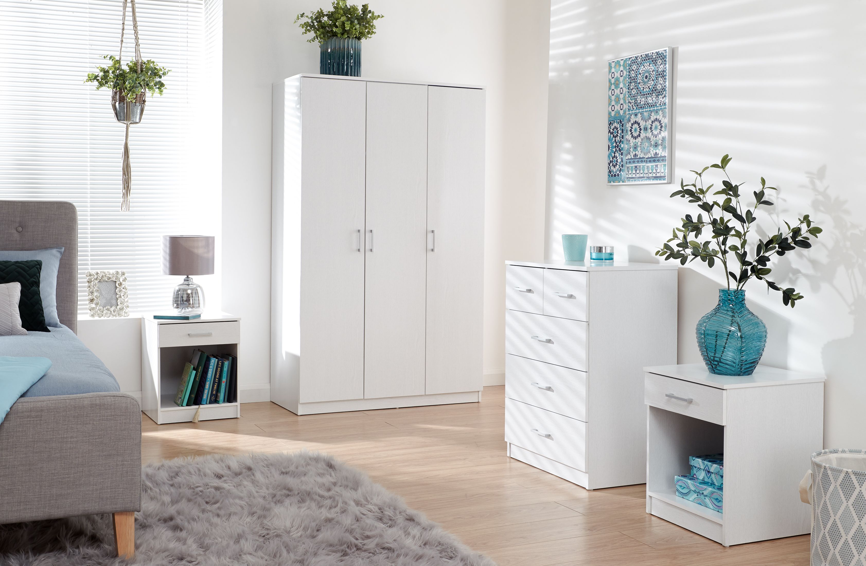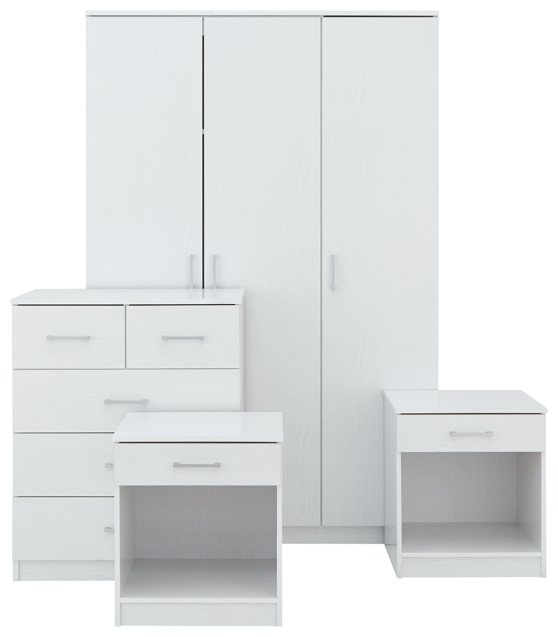 Wardrobe Set - PRADA 3 Door Bedroom Set 4 Piece White 101cm