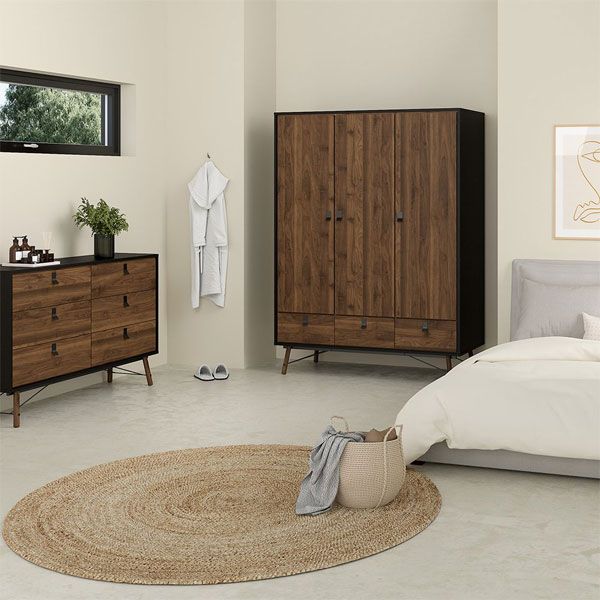 Wardrobe Set - RYTON 3 Door Bedroom Set 3 Piece Matt Black and Walnut 150cm