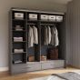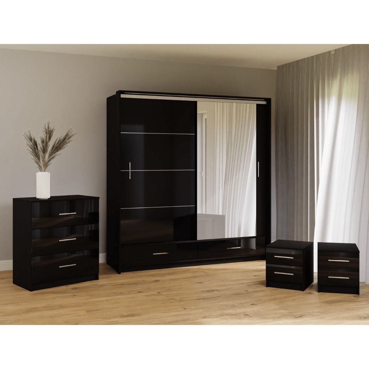 Wardrobe Set - WARRINGTON 2 Door Bedroom Set 4 Piece Black 208cm