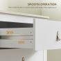 Experience the robust durability of our drawer chest, crafted from particle board meeting E1 standards for reliability and safety. Its modern style and elegant design seamlessly enhance your home decor, while offering spacious storage drawers to keep your belongings organised. Enjoy the quiet glide of the drawers, ensuring a smooth and comfortable user experience, making it a great addition to any bedroom.