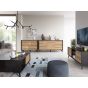 Warrington Sideboard 104cm in artisan oak with a black finish. Perfectly designed with lots of storage space. With one PUSH-TO-OPEN compartment and a column of drawers, our Warrington sideboard unit is the perfect blend of Scandi chic and cosy living. Ideal addition for your living room. The arrow theme provides a unique modern touch.