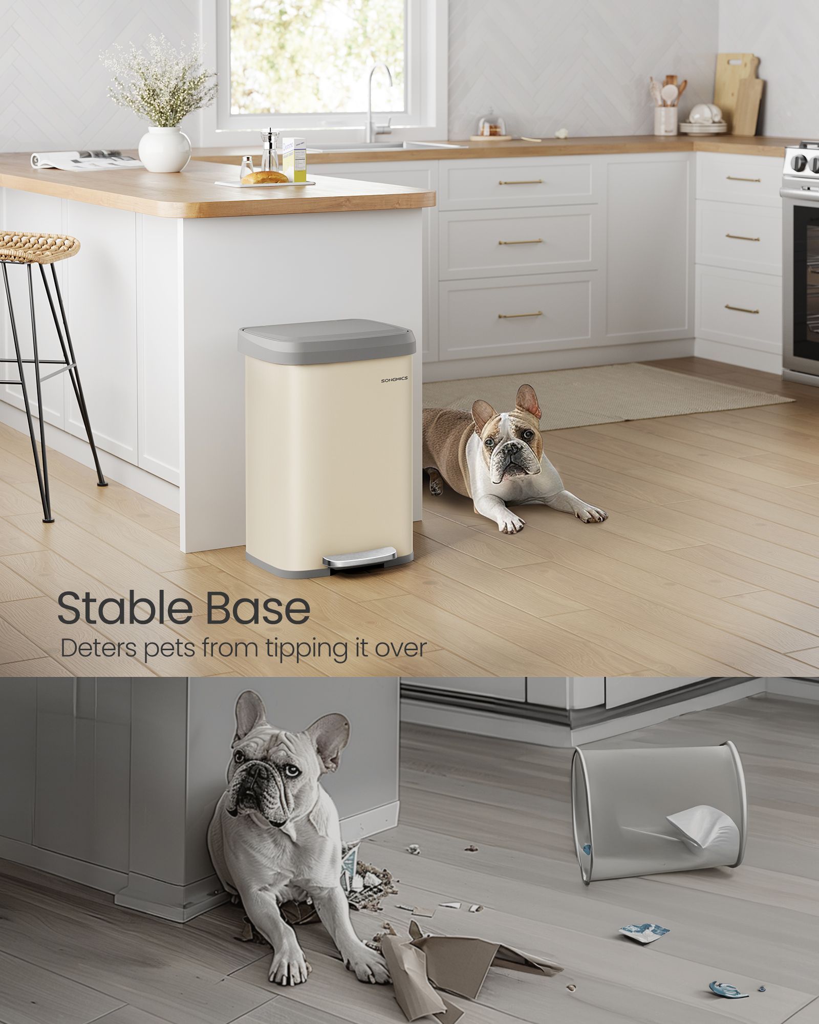 Waste Bin - MODRA Metal Pedal Bin with Lid - Sand Beige and Dove Grey