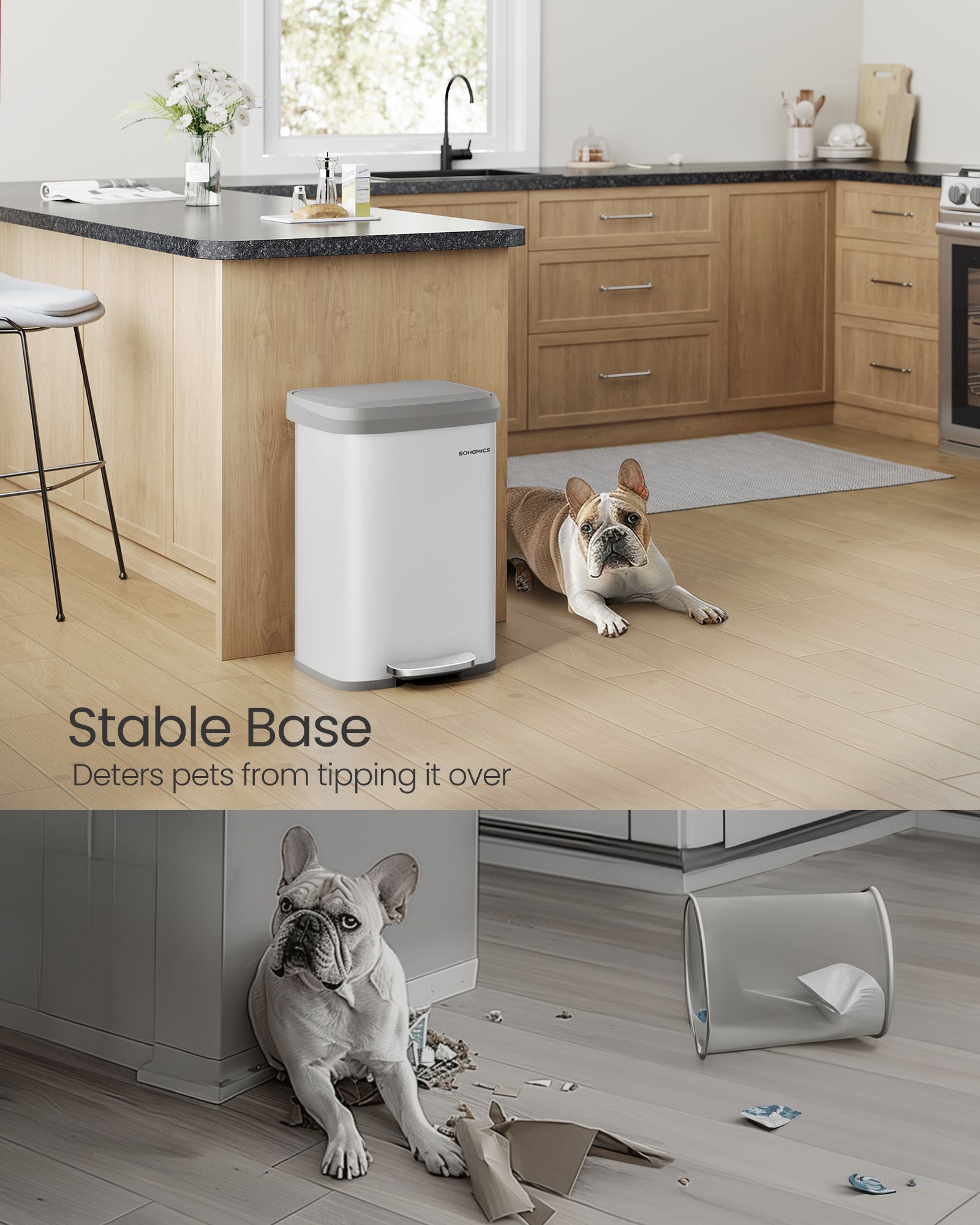 Waste Bin - MODRA Metal Pedal Bin with Lid - White and Dove Grey