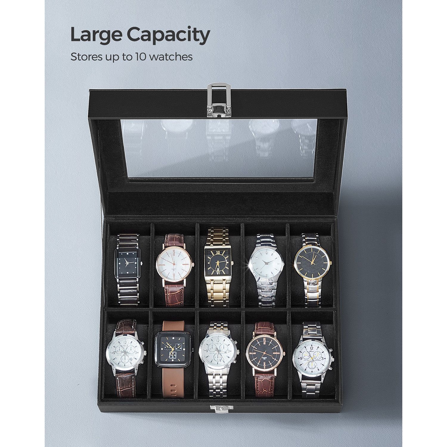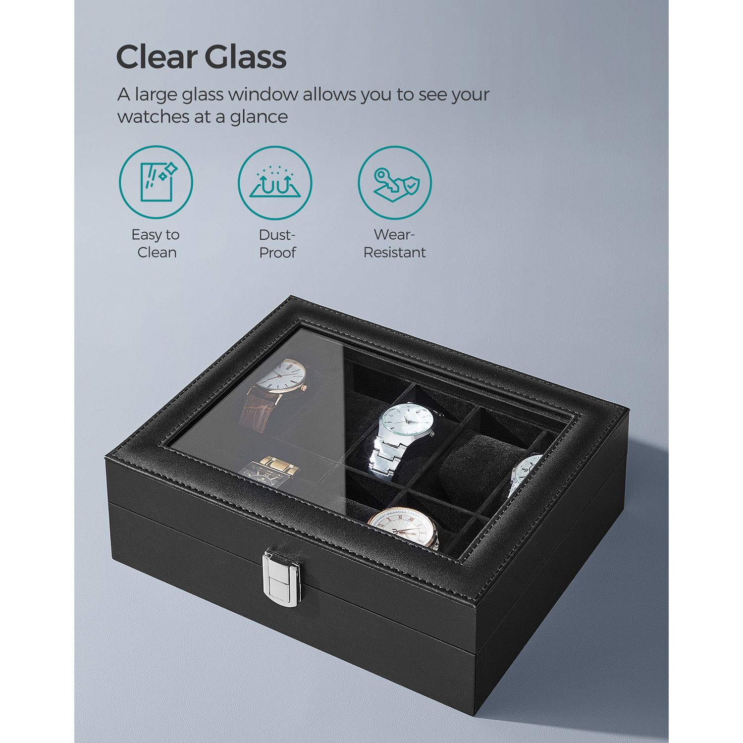 Watch Box - GRARIA 10 Slots Organizer with Glass Lid - Black