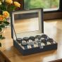 Watch Box - VERRIA 10 Slot Organizer Faux Leather Display Case with Glass Lid and Removable Pillows - Black