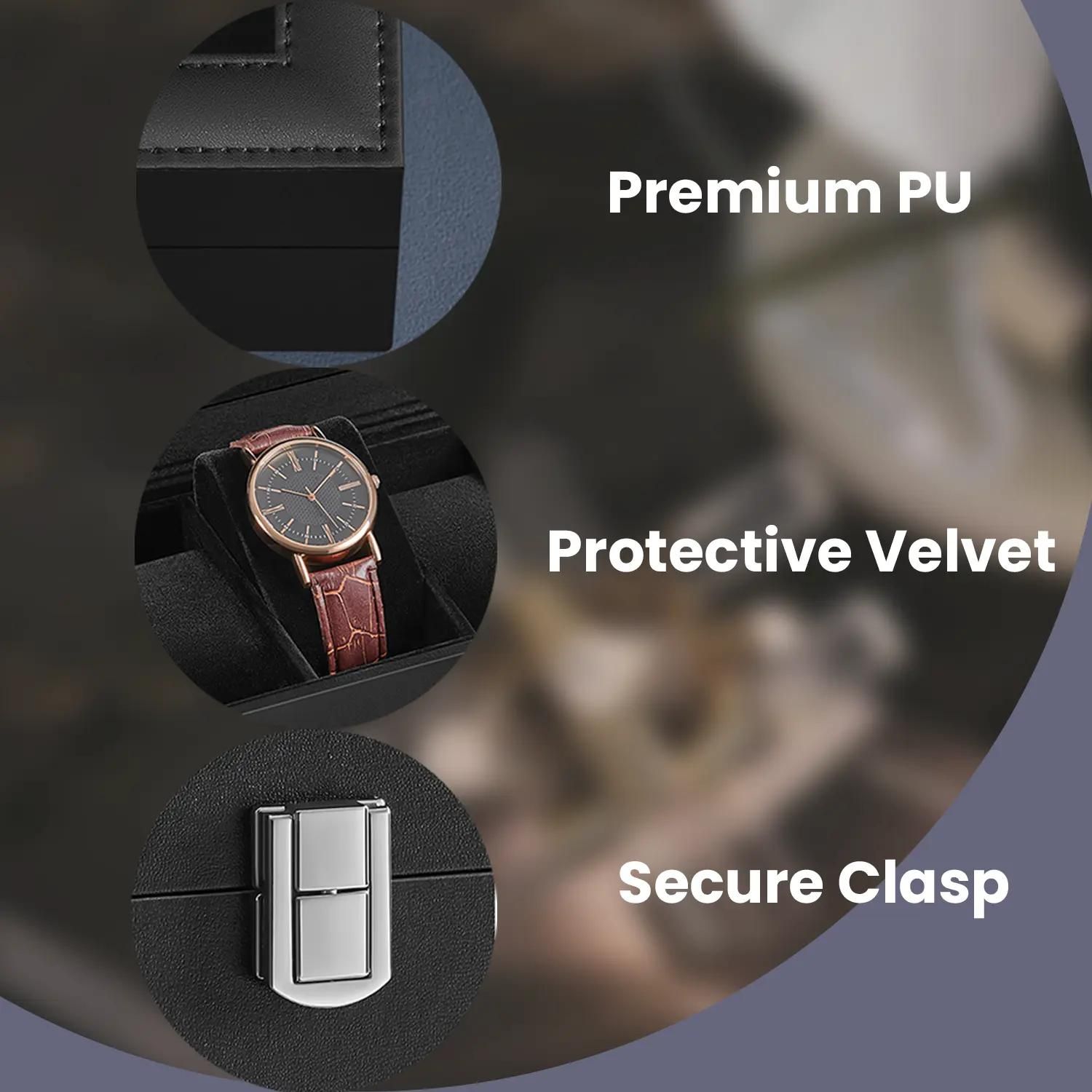 Watch Box - VERRIA 6 Slots Organizer Case with Glass Lid and Removable Pillow - Black
