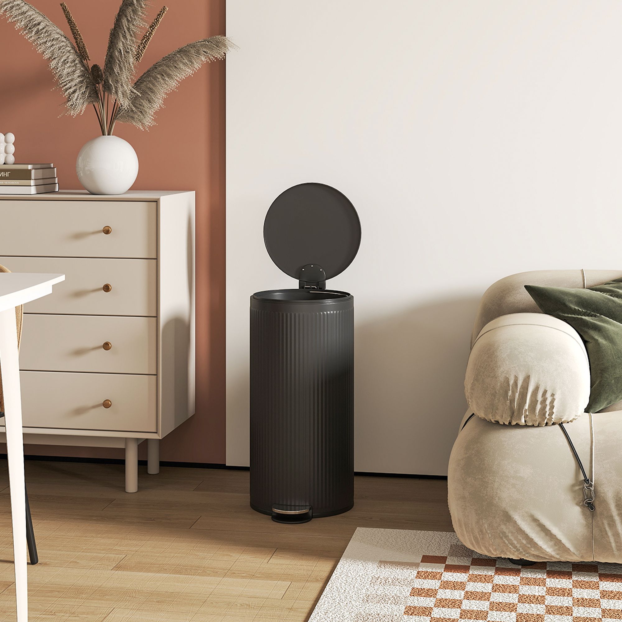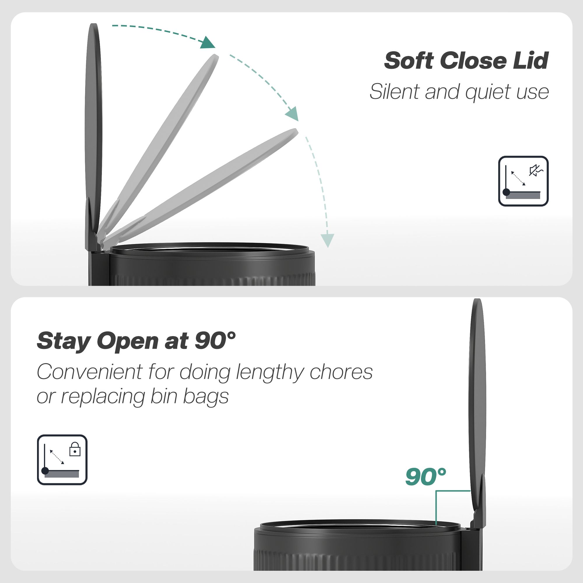 WEALDMERE 30L Rubbish Bin with Soft Close, Stay Open Lid, Rubbish Bin and Removable Inner Bucket -Black