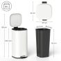 WEALDRIC 30L Rubbish Bin Compact Pedal with Soft-Close, Stay-Open Lid, Removable Bucket - Cream