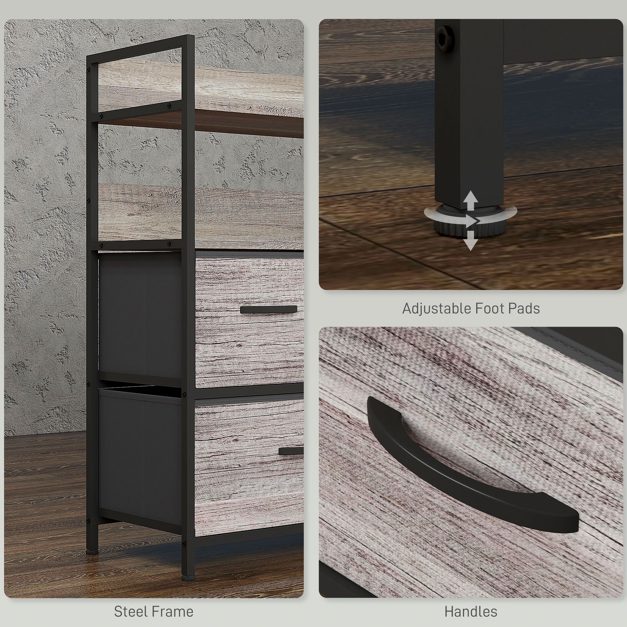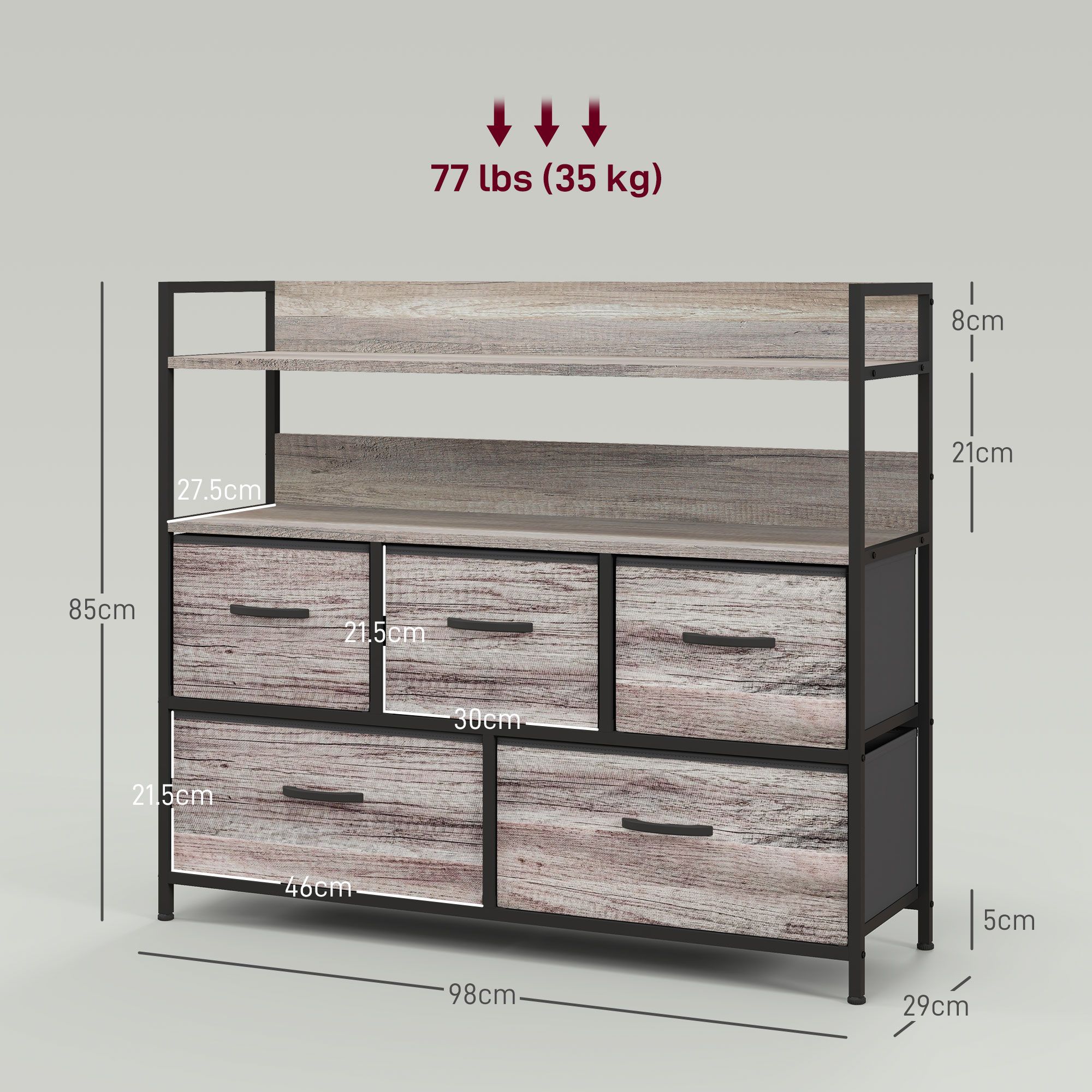 WENZA Grey Chest of Drawers - Large-sized, 5 Drawers, Fabric