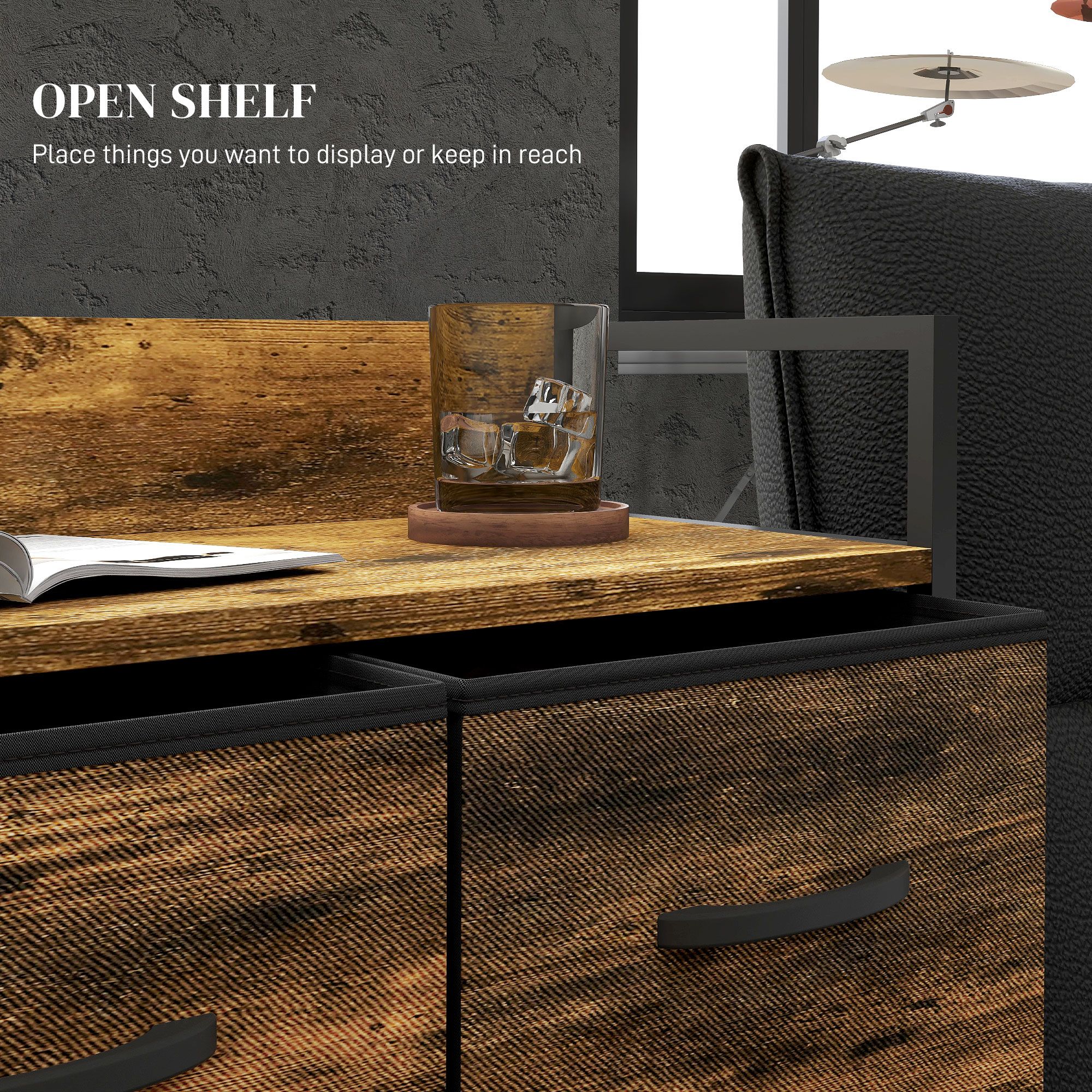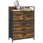 WENZA Oak Finish Chest of Drawers - Medium-sized, 4 Drawers, Fabric