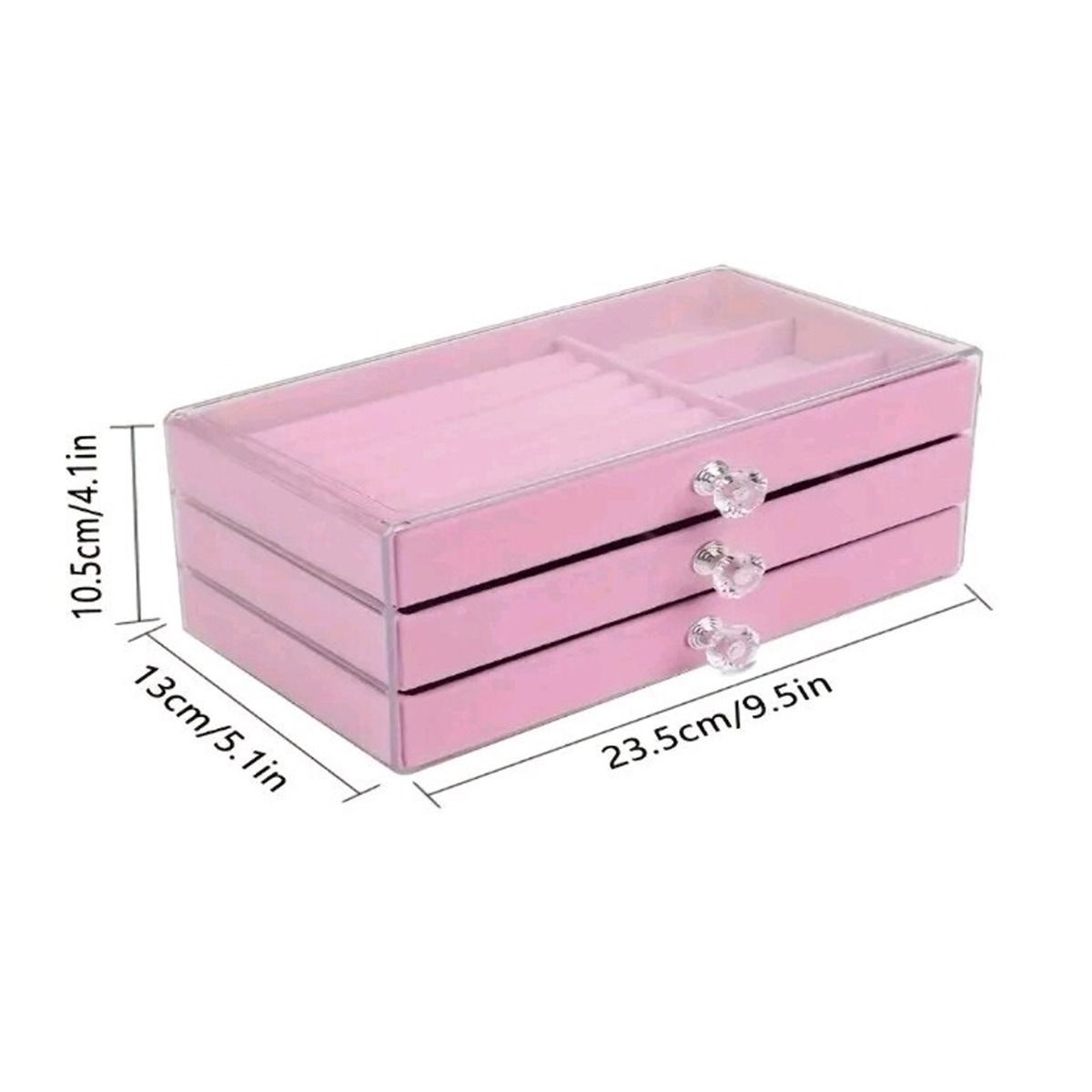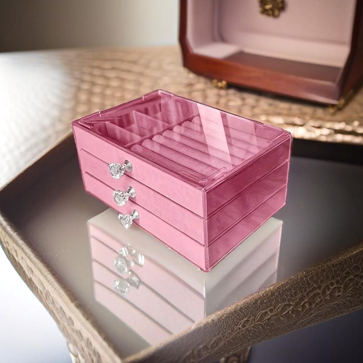 WESTORA Jewellery Box Large Acrylic Storage Organizer with 3 Drawers - Pink