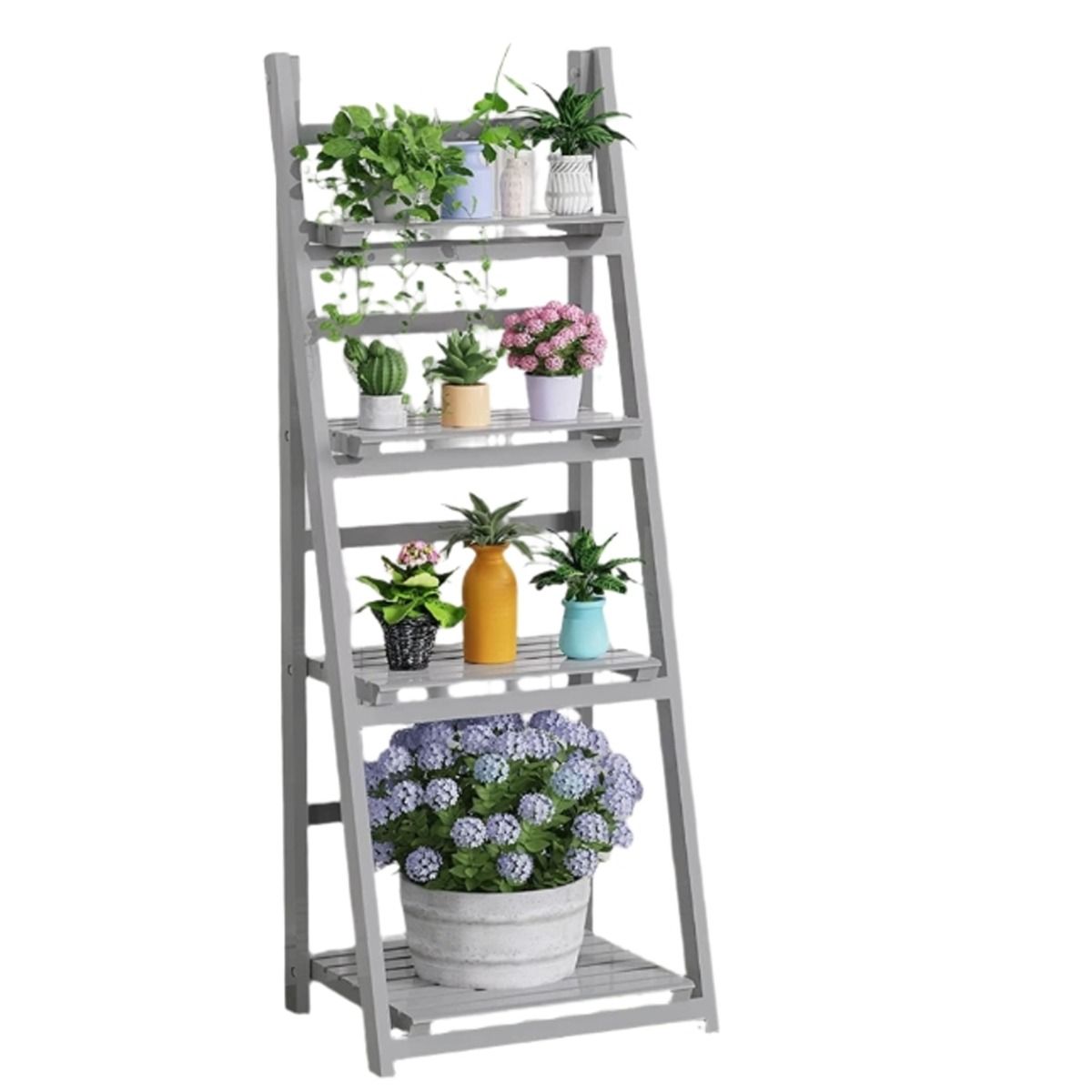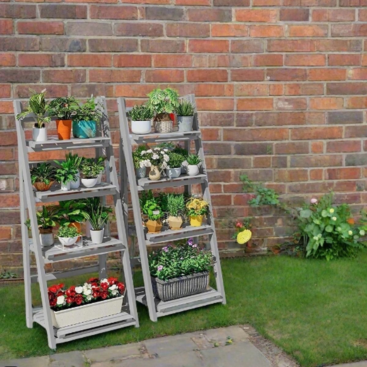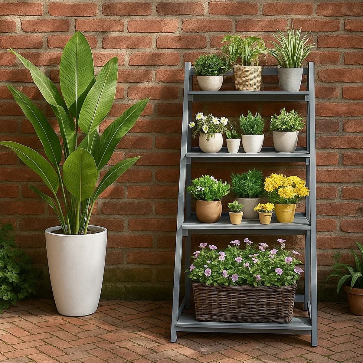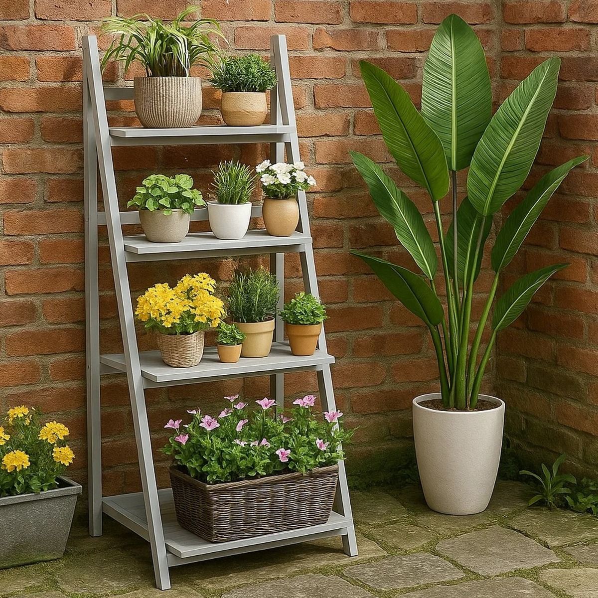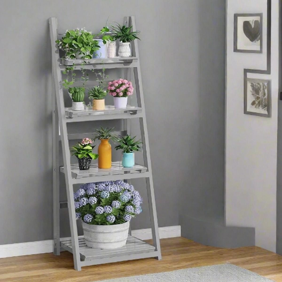 WESTORA Plant Stand 4-Tier Foldable Wooden Ladder Shelf Display Rack - Grey
