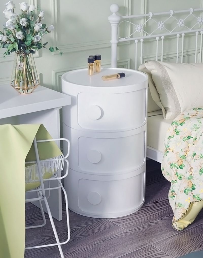 White 2ft H Round 3 Tier Drawer Storage Unit Organizer