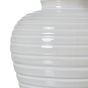 Discover the allure of this stunning white ceramic pot lamp, a masterpiece of understated elegance. The base boasts intricate horizontal ribbing, creating a mesmerizing interplay of light and texture that adds depth to any room. Crowned with a sophisticated linen shade in a harmonious neutral hue, this lamp seamlessly blends rustic charm with modern refinement. Perfect for coastal, farmhouse, or minimalist interiors, this adaptable piece effortlessly complements various design styles. Its clean silhouette and organic form make it ideal for bedside tables, entryway consoles, or living room side tables. Combine it with natural elements like jute rugs, woven baskets, or distressed wood furniture to amplify its earthy appeal. For a curated aesthetic, consider grouping this lamp with other ceramic decor items of varying heights and shapes. The neutral color palette ensures easy integration with both vibrant and muted color schemes, making it a versatile choice for your discerning clientele.