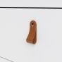 A modern chest of drawers in a striking design complete with brown leather tab handles, also available in contrasting matt black