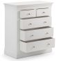 The Clermont Bedroom Collection is finished in a striking white lacquered finish, with simple clear lines that add a feeling of light and space. Crafted from Pine and MDF, featuring brushed steel handles, this elegant French inspired design is suitable for both contemporary and traditional settings. The Clermont 3+2 Drawer Chest offers a mixture of small and large drawers, suitable for your T-shirts, underwear and other items.