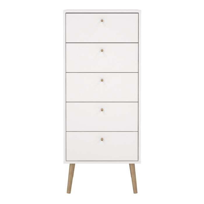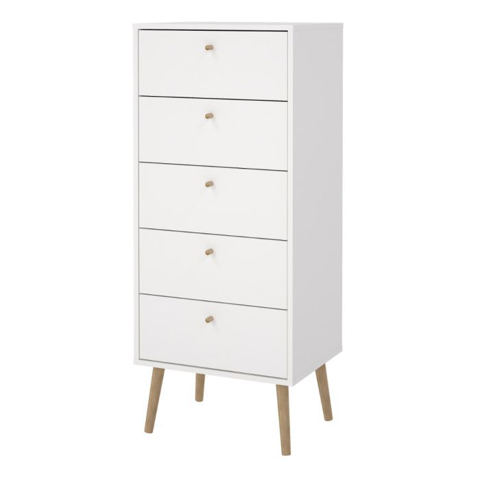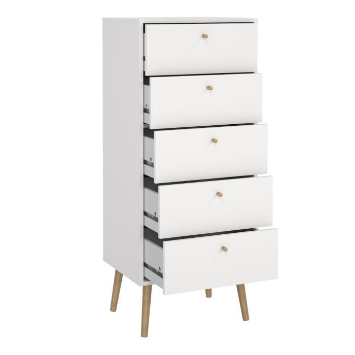 COBALT White Chest of Drawers - Tallboy, Medium-sized, 5 Drawers