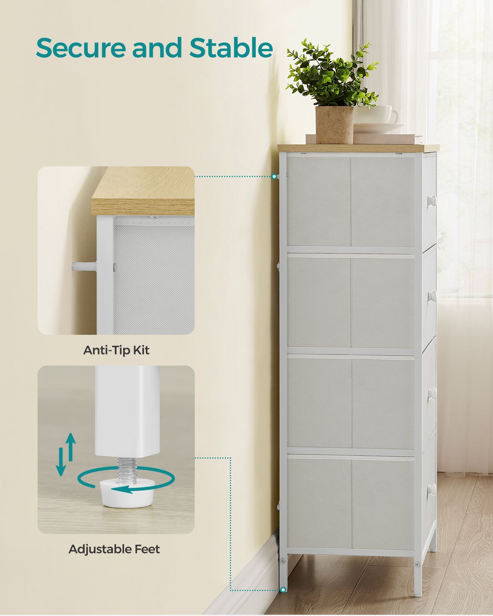 DALE White Chest of Drawers - Tallboy, Medium-sized, 4 Drawers