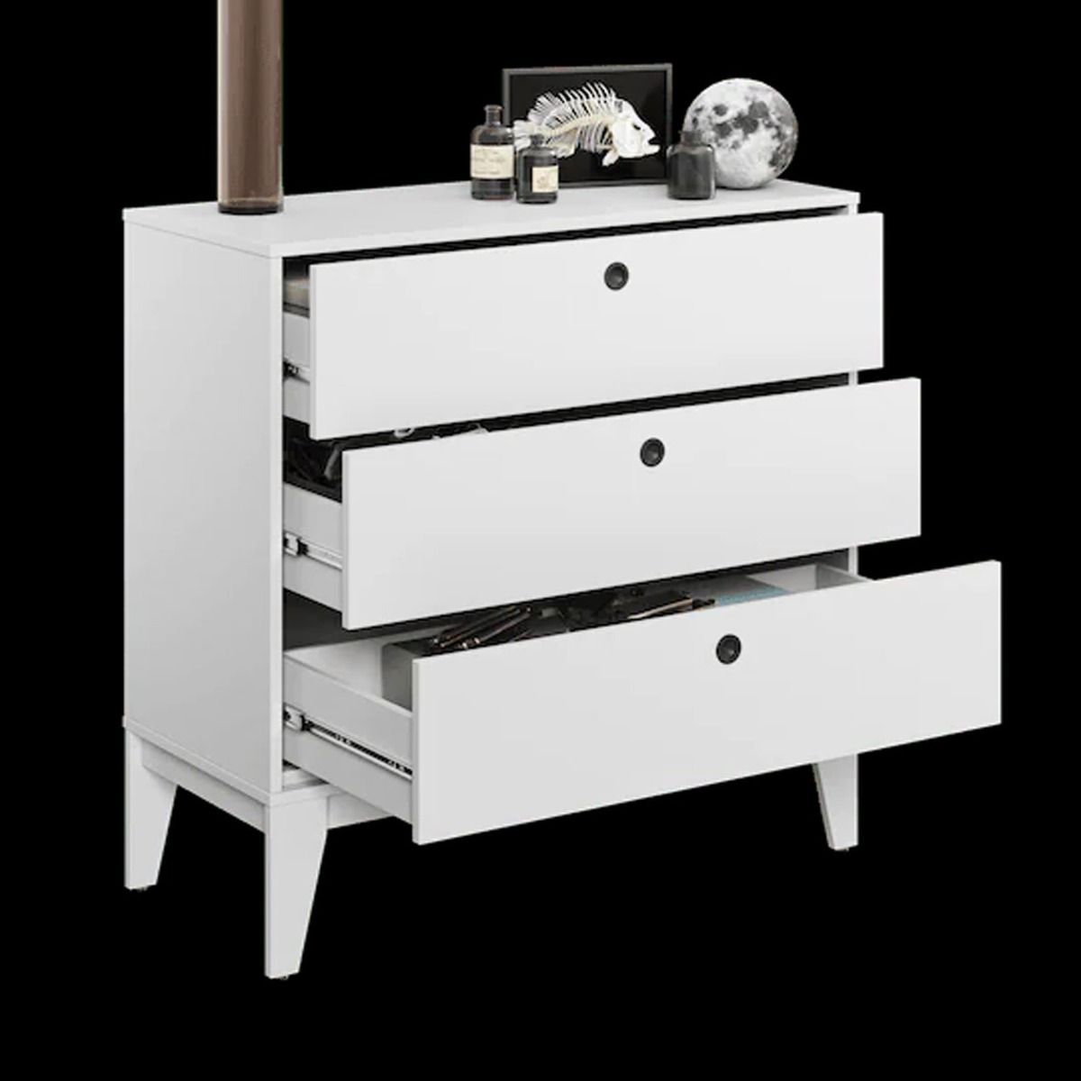 FOGGIA White Chest of Drawers - Large-sized, 3 Drawers